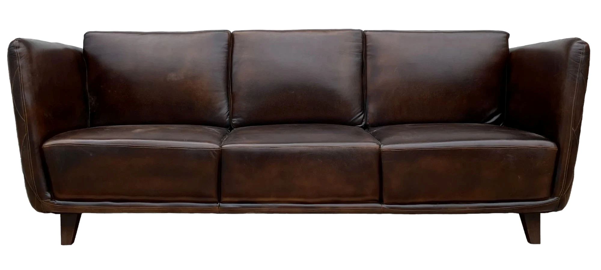 3-Seater Dark Brown Genuine Leather Couch Sofa Home Office Modern Lounge