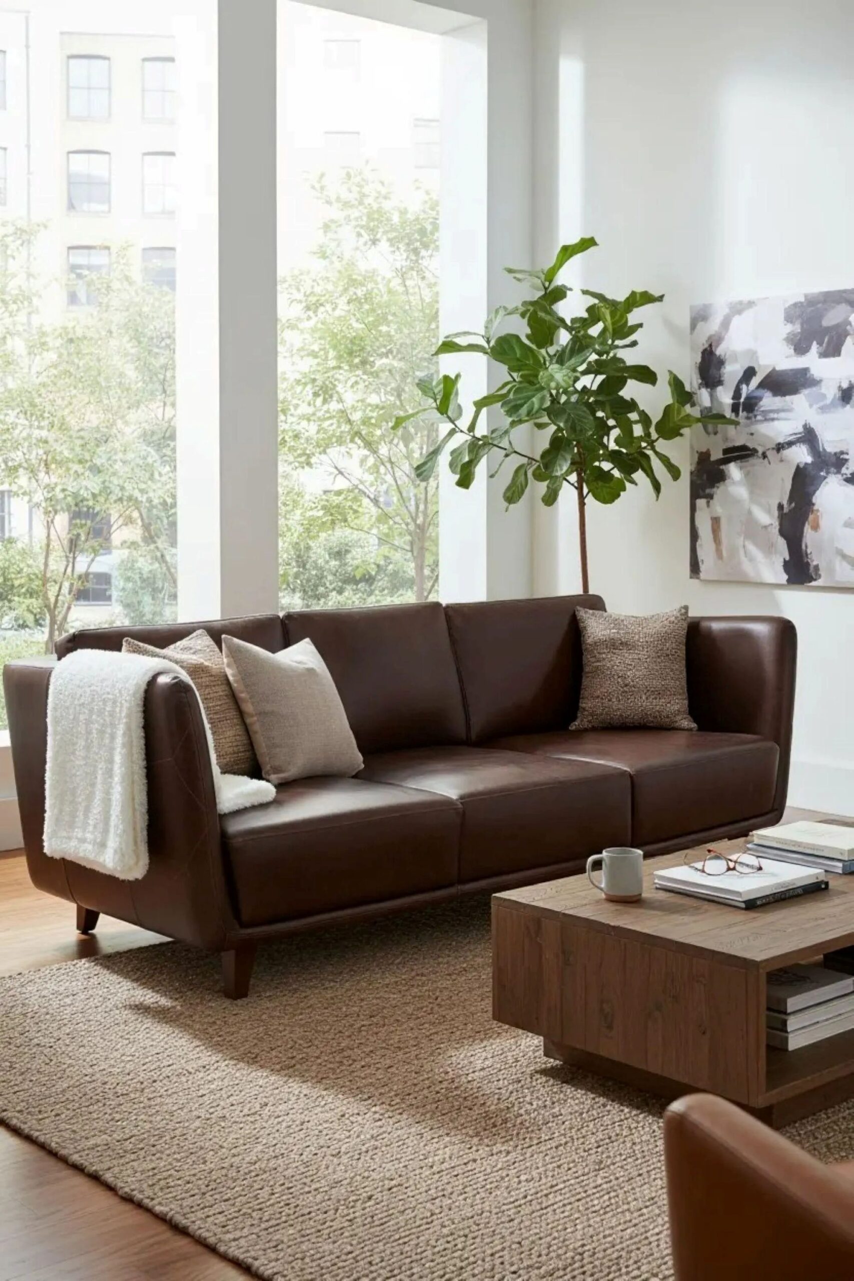 3-Seater Dark Brown Genuine Leather Couch Sofa Home Office Modern Lounge quantity