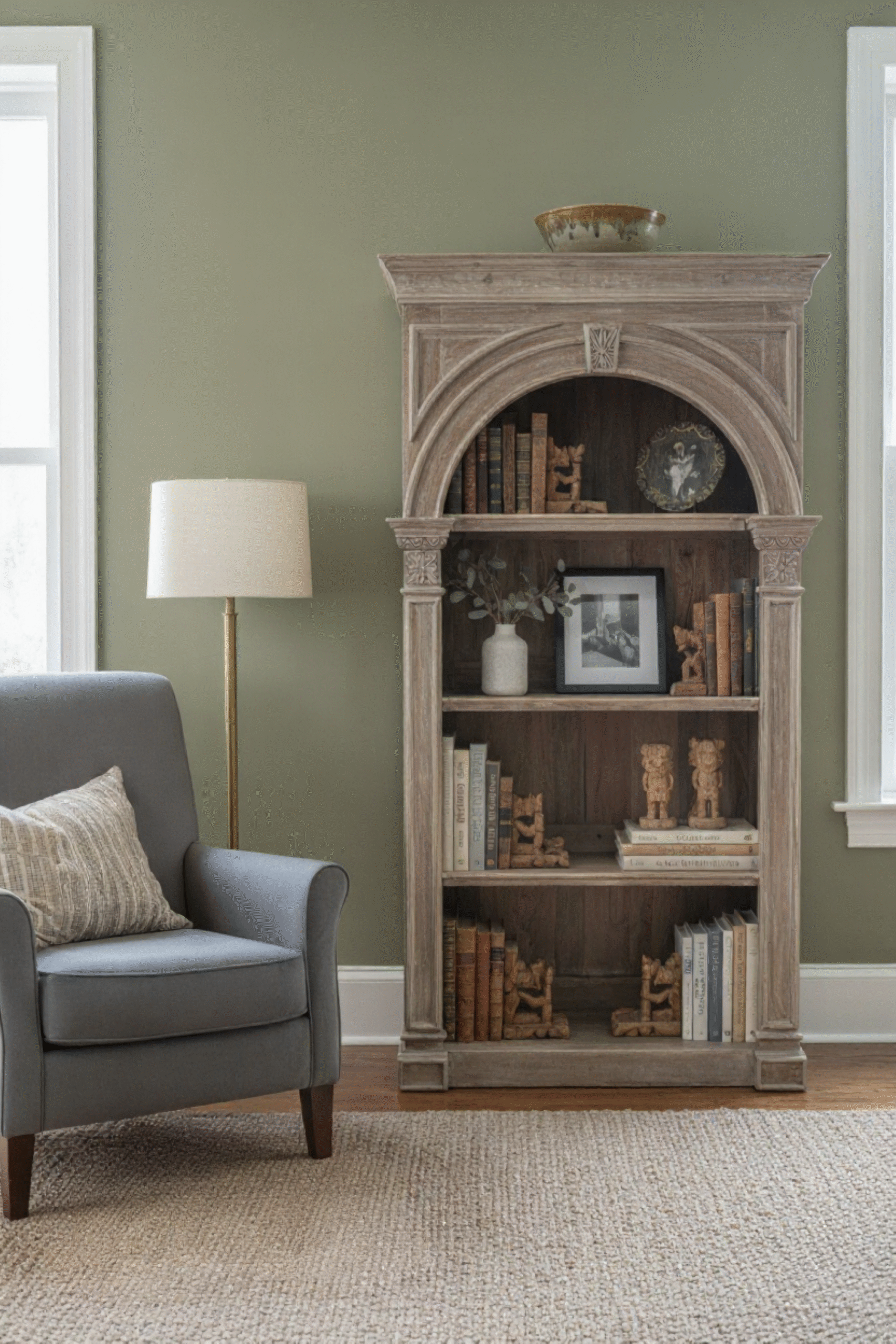 Roosevelt Contemporary Single Arched Tall Library Bookcase Hand Carved Solid Wood
