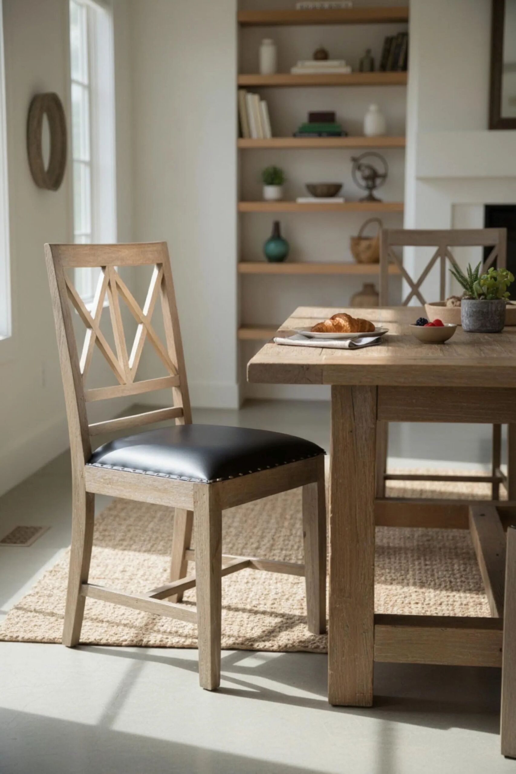 Country French Leather Dining Kitchen Chairs Contemporary Hand Carved 4 Chairs Included quantity