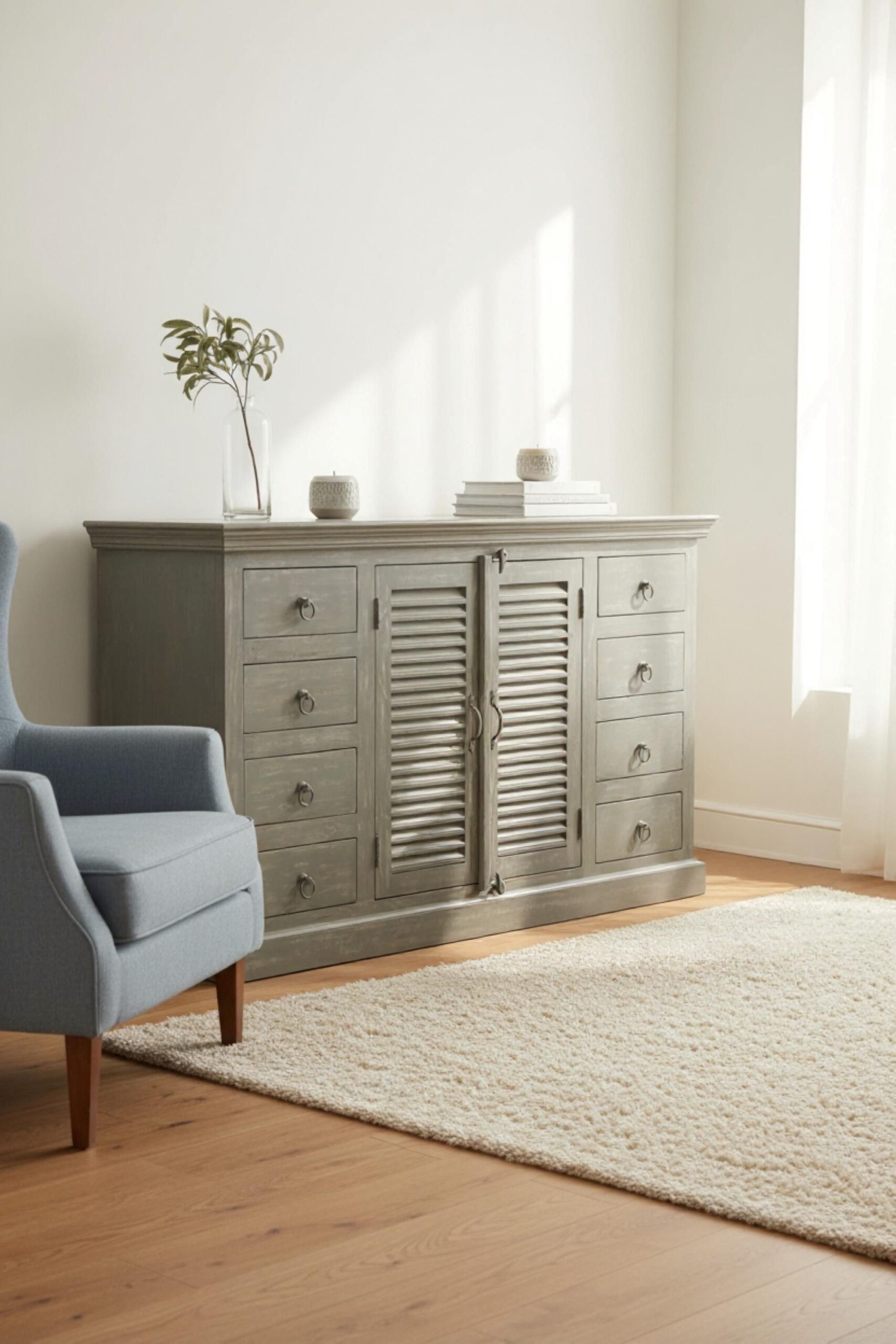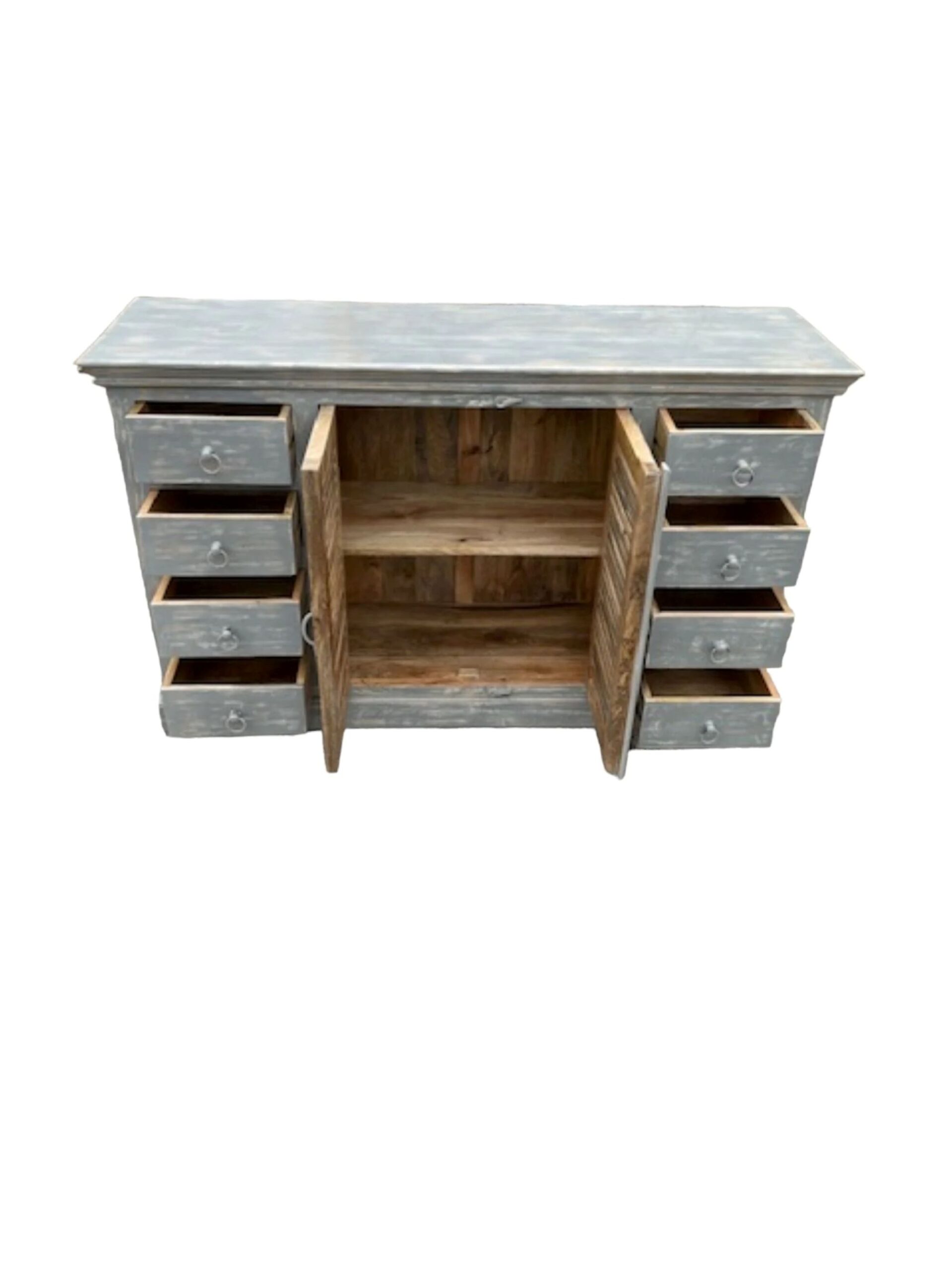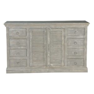 Farmhouse Mango Wood Sideboard Distressed 2 Shutter Door Buffet Media Cabinet Grey