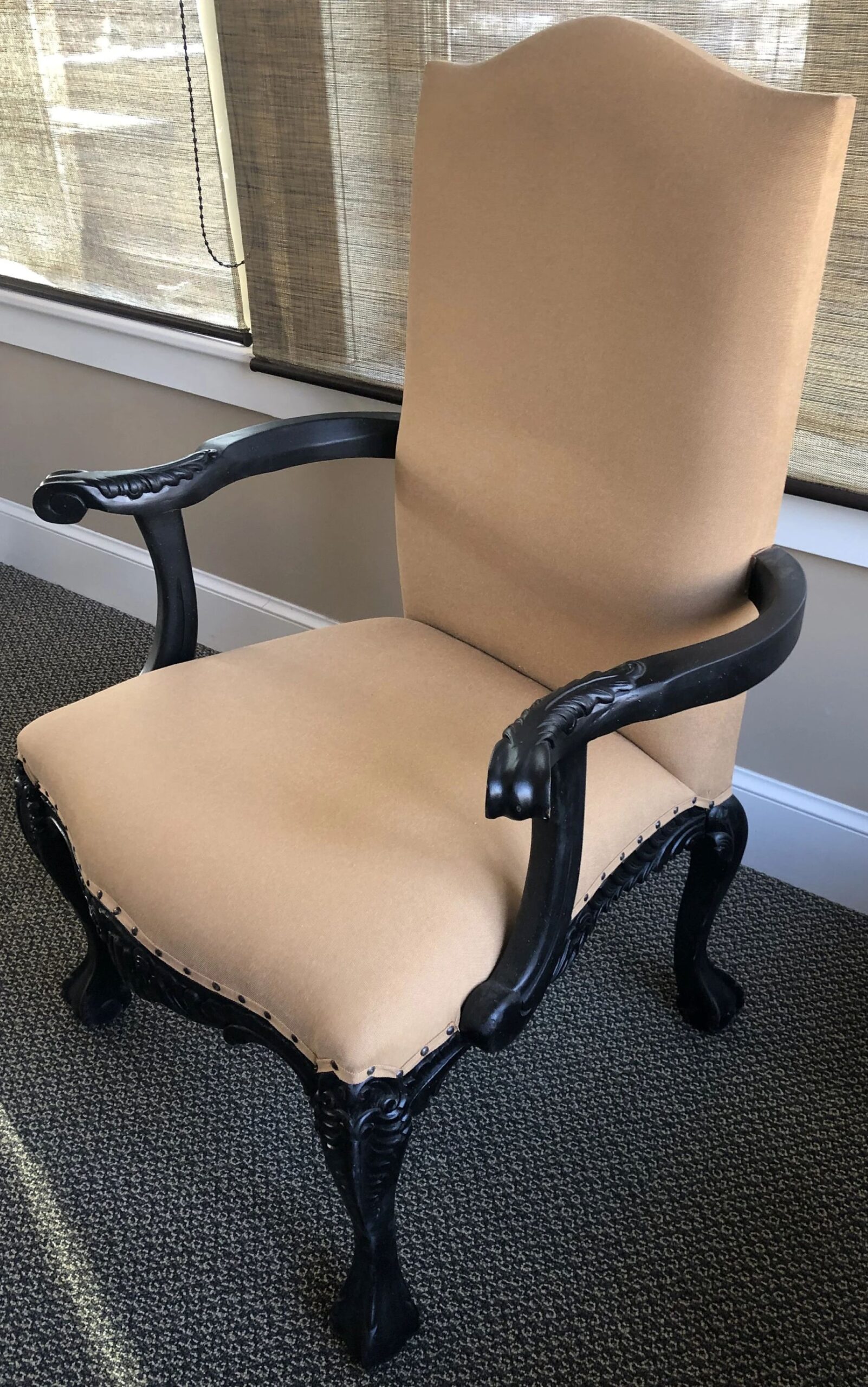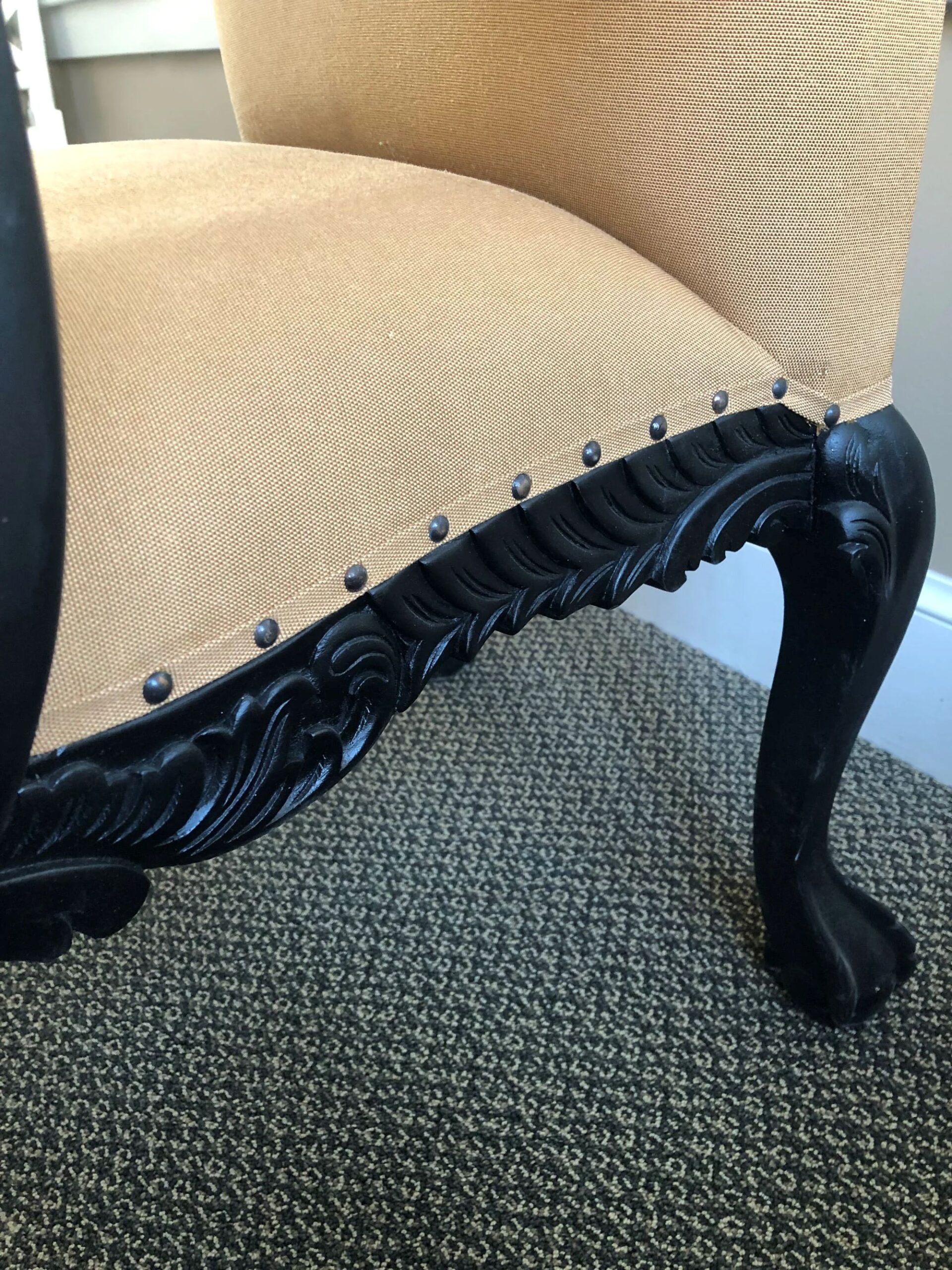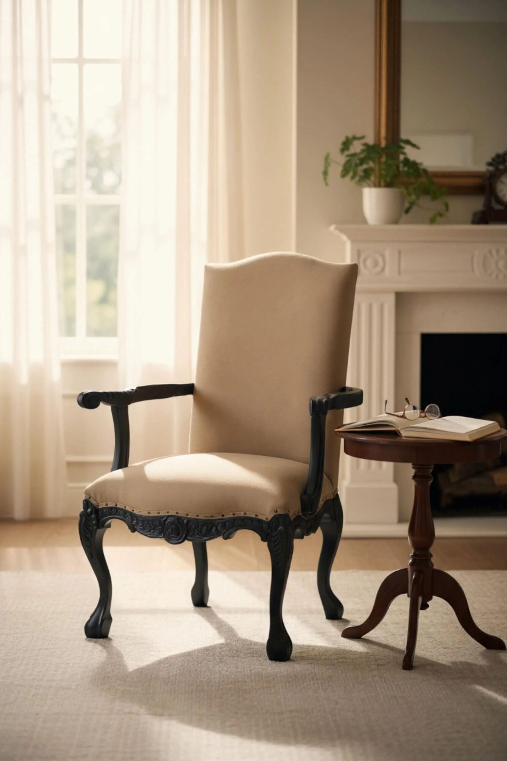 French County High Back Modern Linen Kitchen Black Dining Table Accent Chairs Scroll Arms quantity
