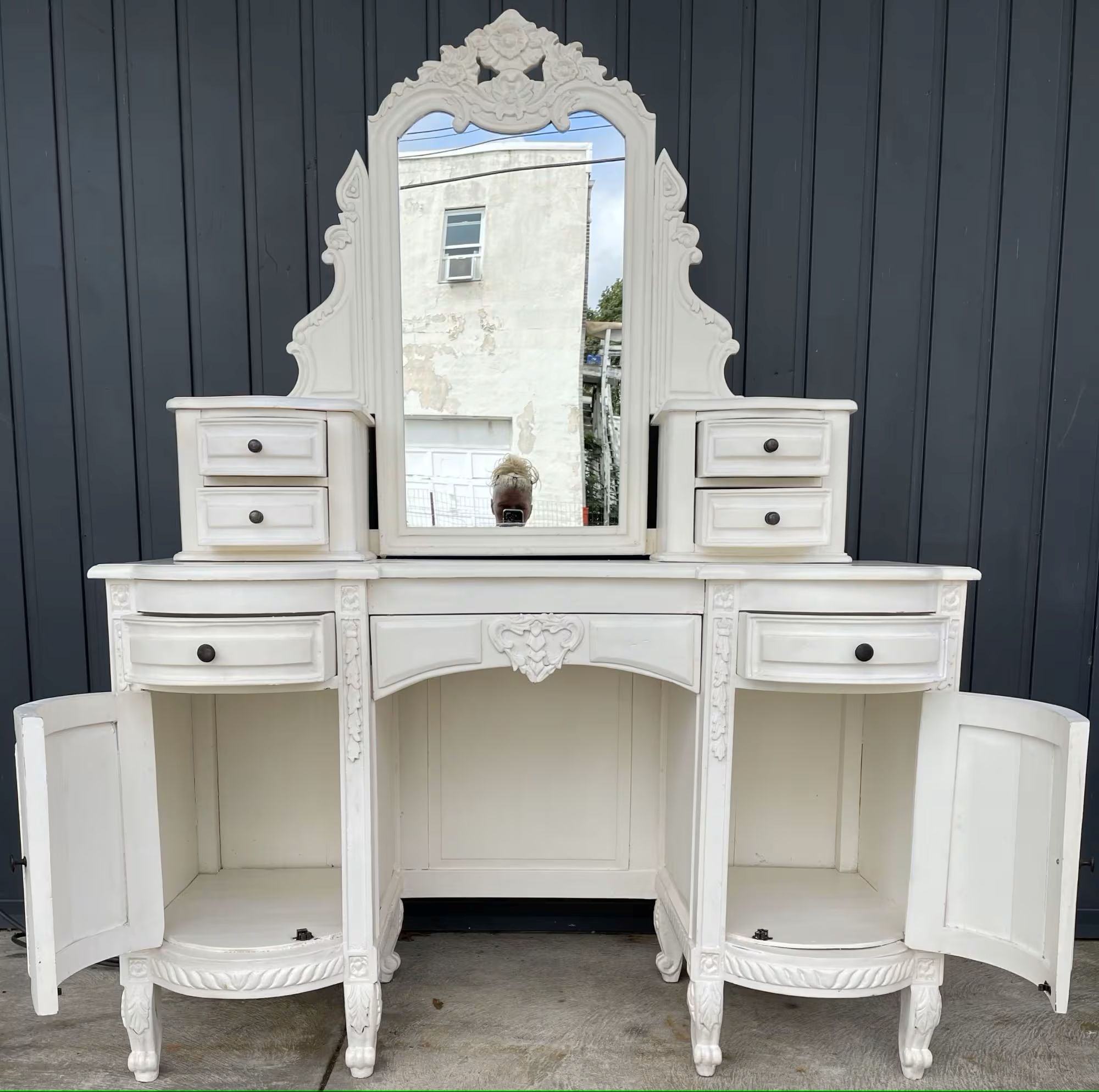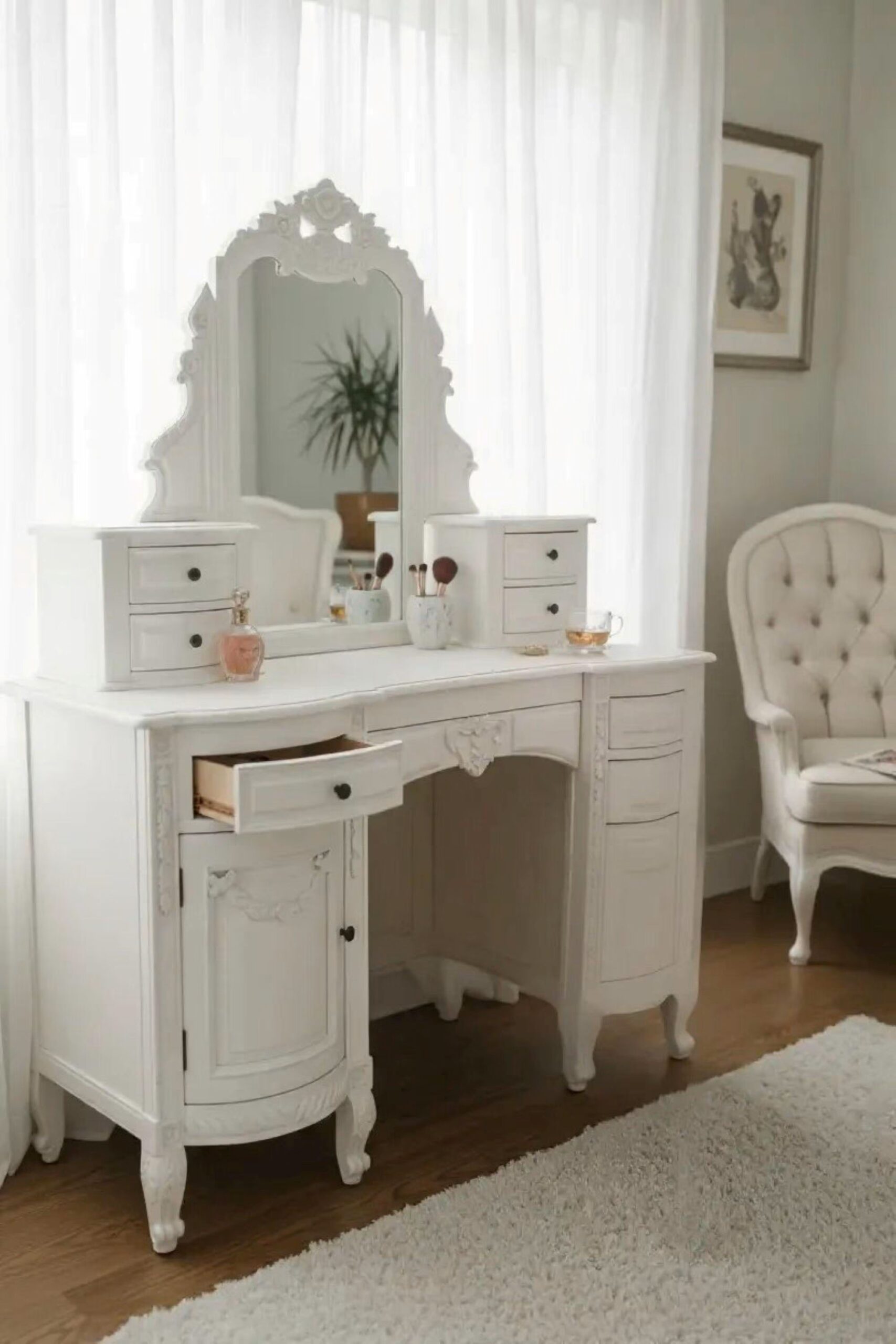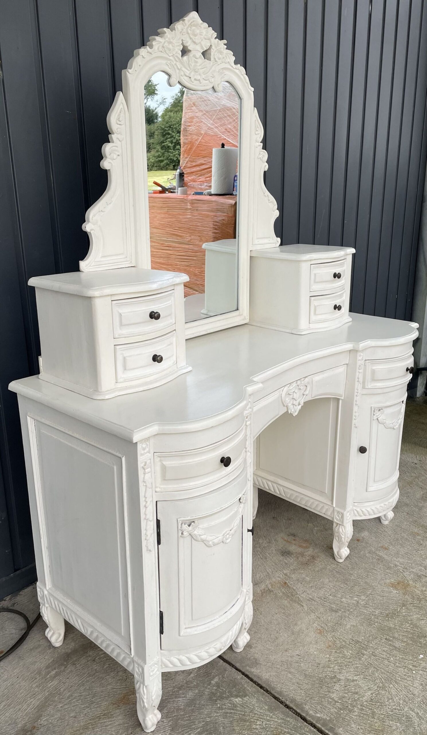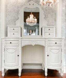 Hand Carved French Country Vanity Shabby Chic Mirrored Dressing Makeup Table