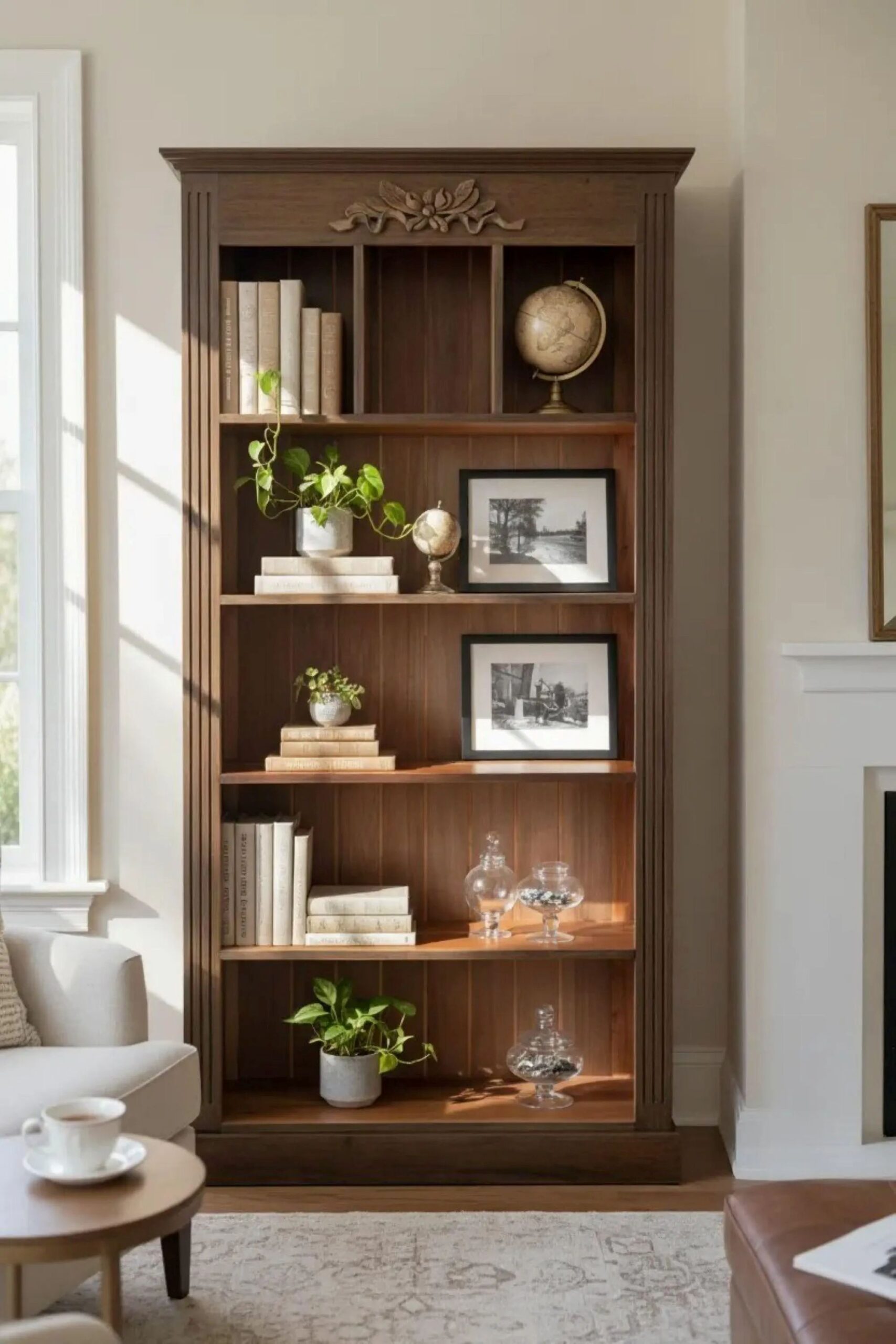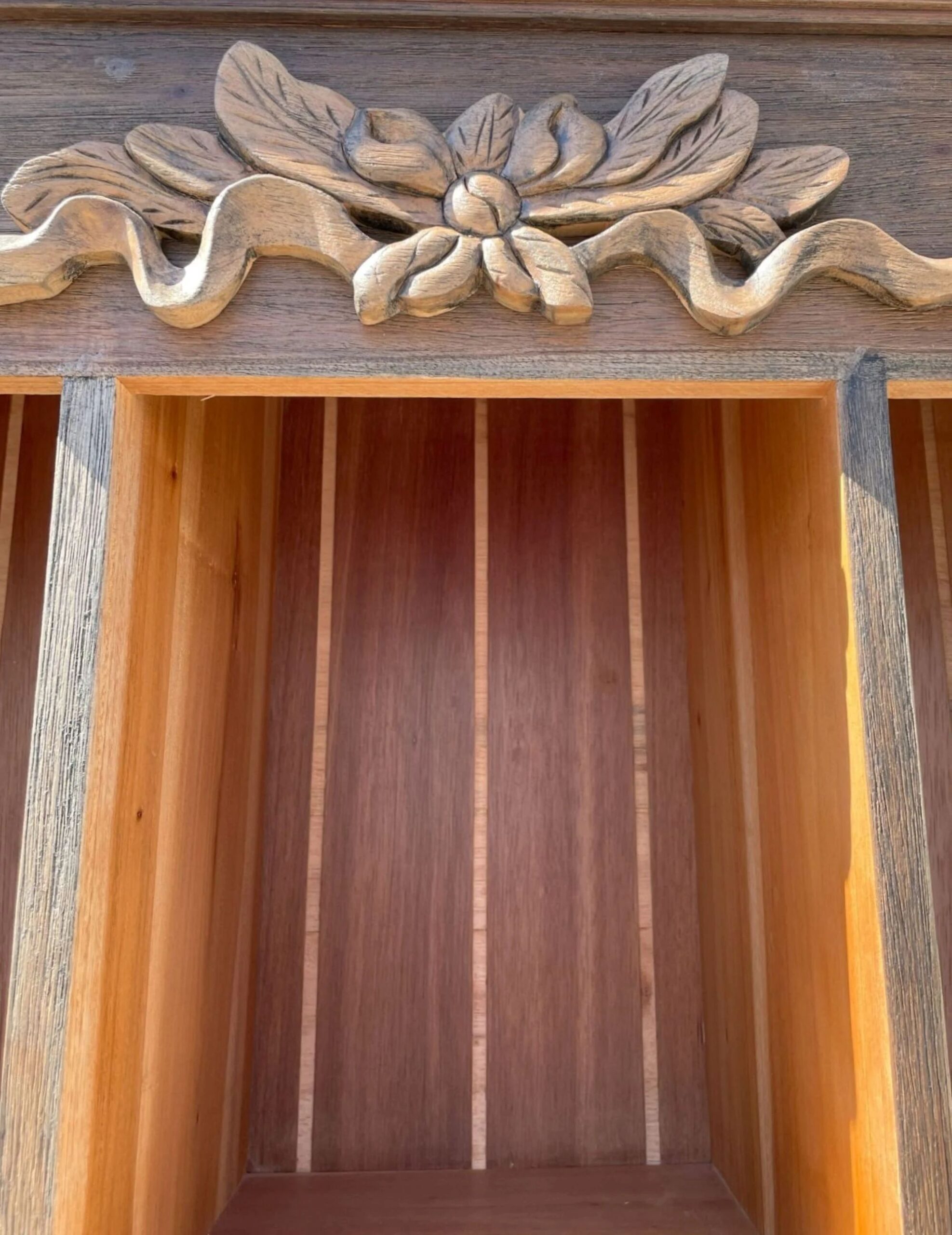 Hand Carved Wooden Bookcase Distressed Open Shelf Storage Linen Cabinet Kitchen Cabinet