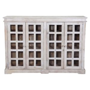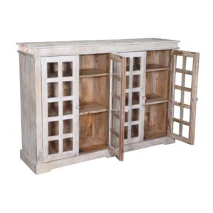 Hand Crafted Coastal Buffet Server Shabby Chic Glass Door Cabinet