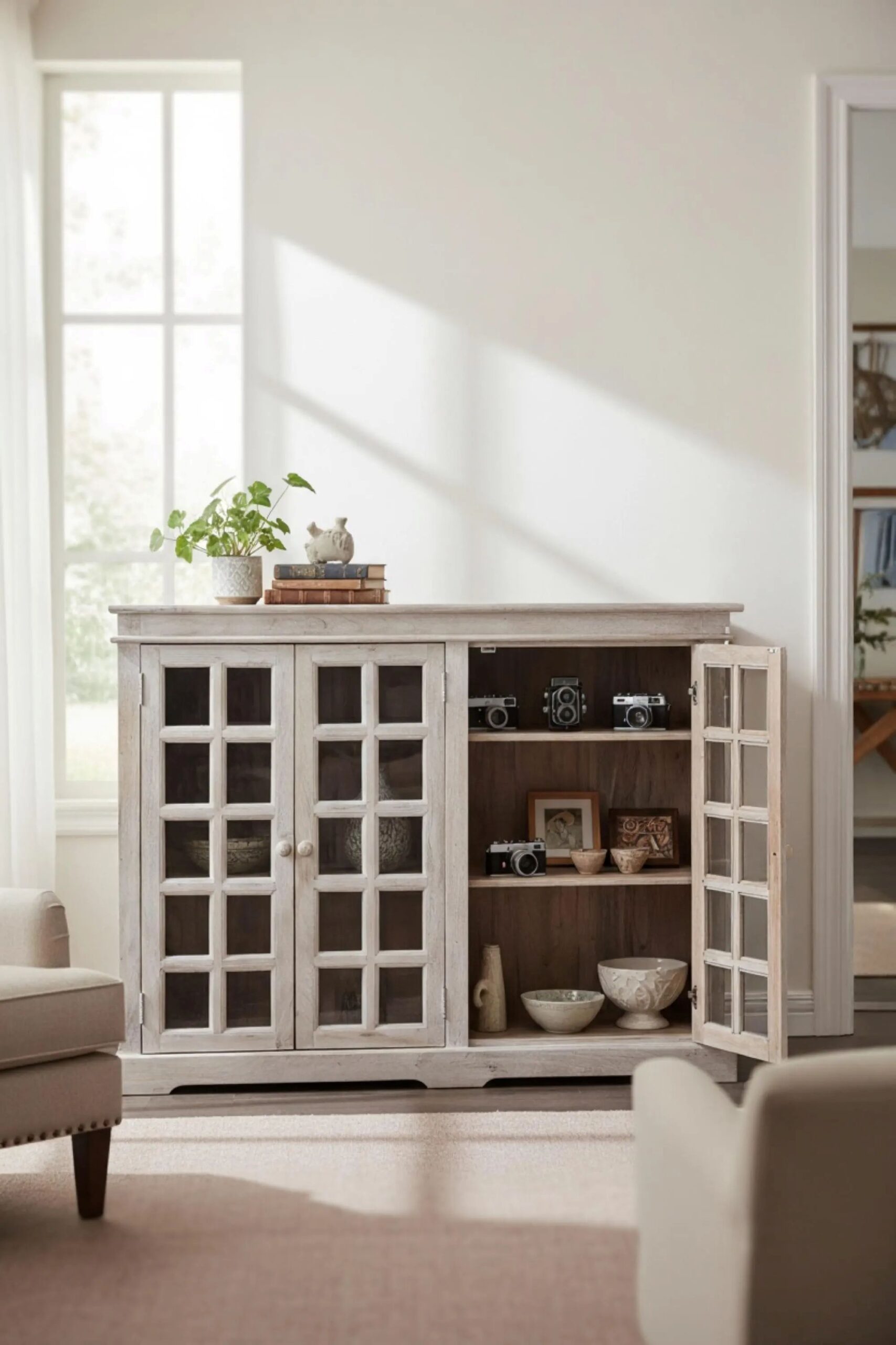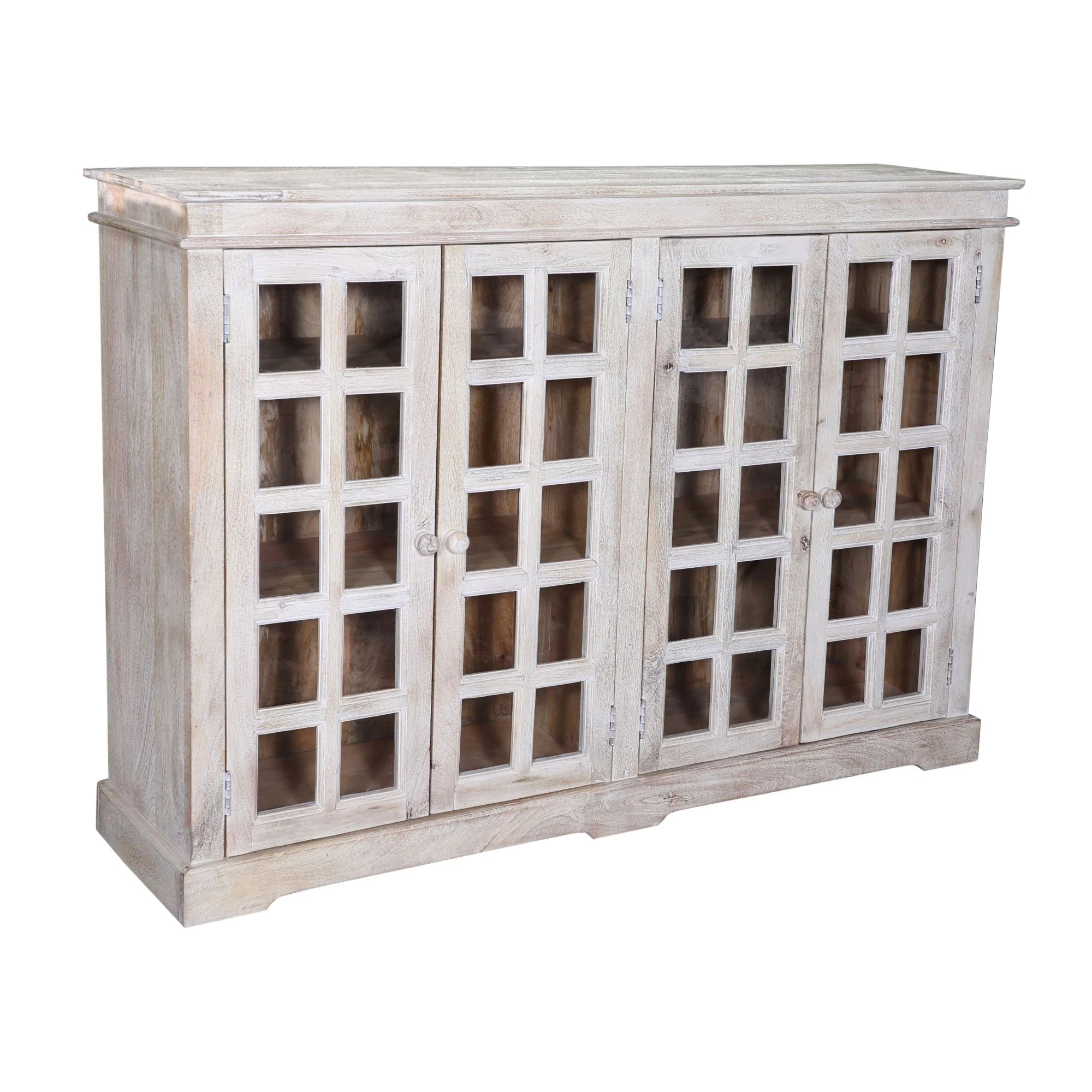 Hand Crafted Coastal Buffet Server Shabby Chic Glass Door Cabinet quantity