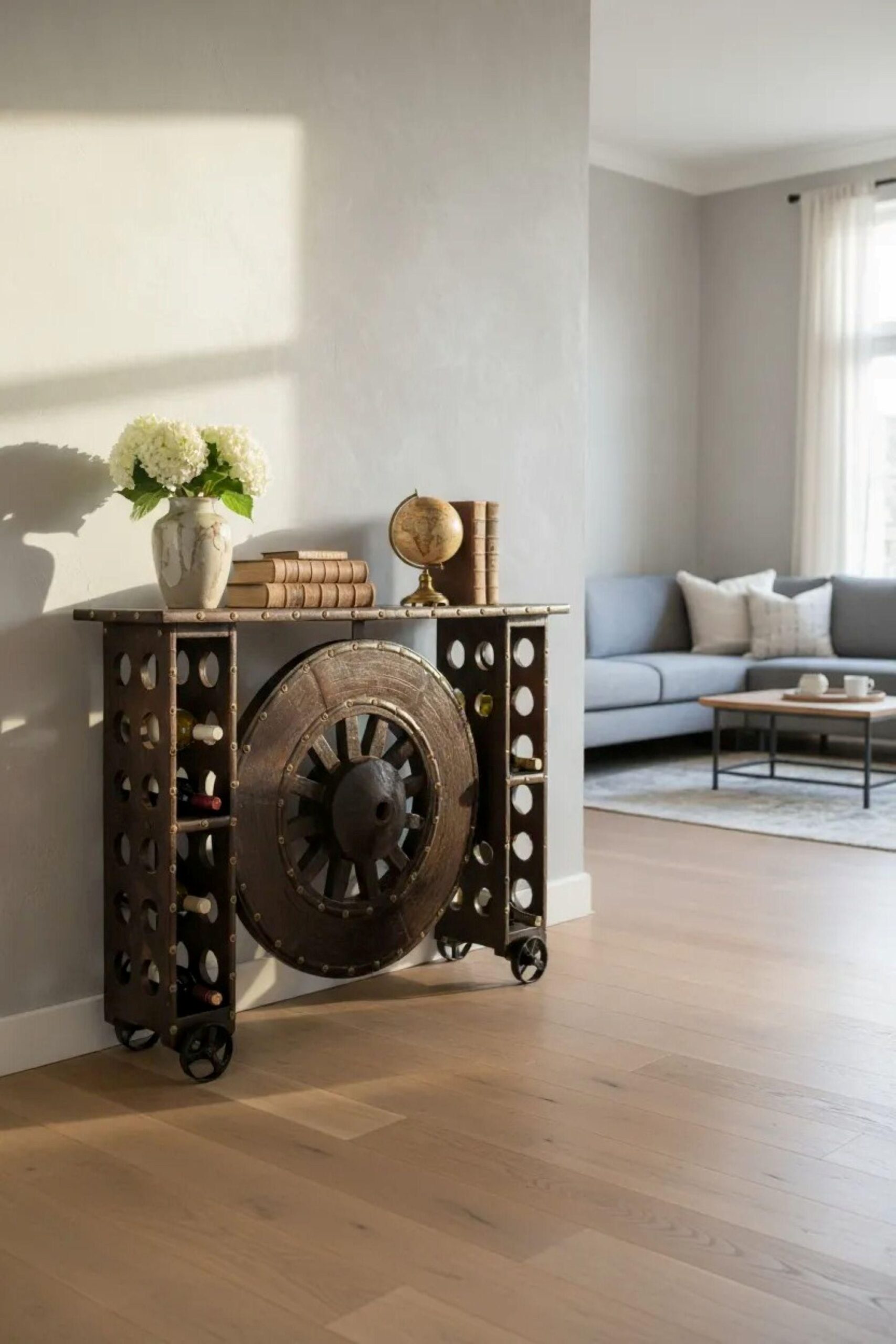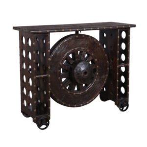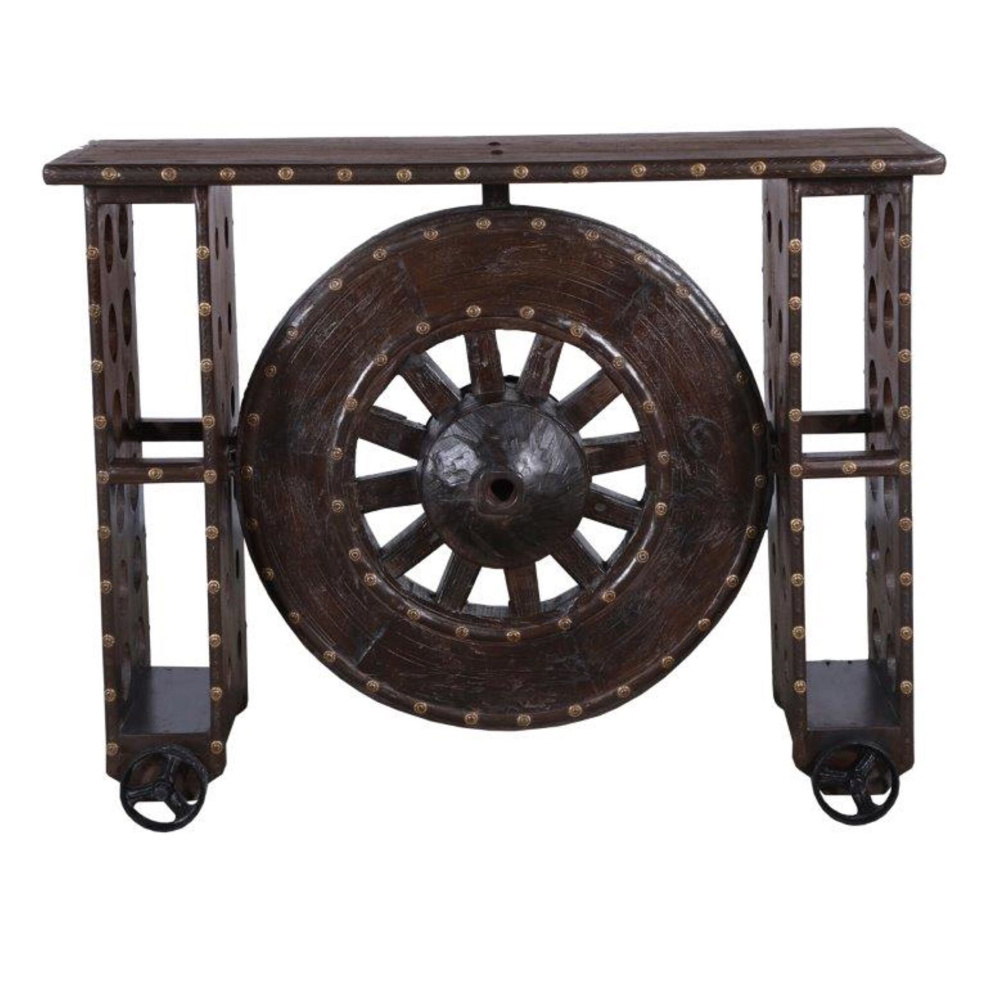 Modern Industrial Wooden Wheel Southwestern Console Table Sideboard Credenza Medieval