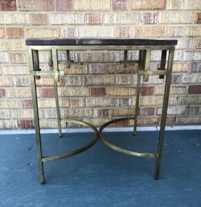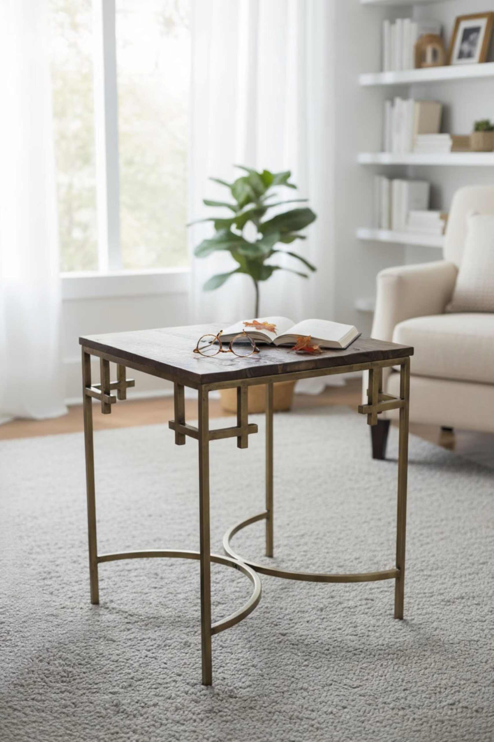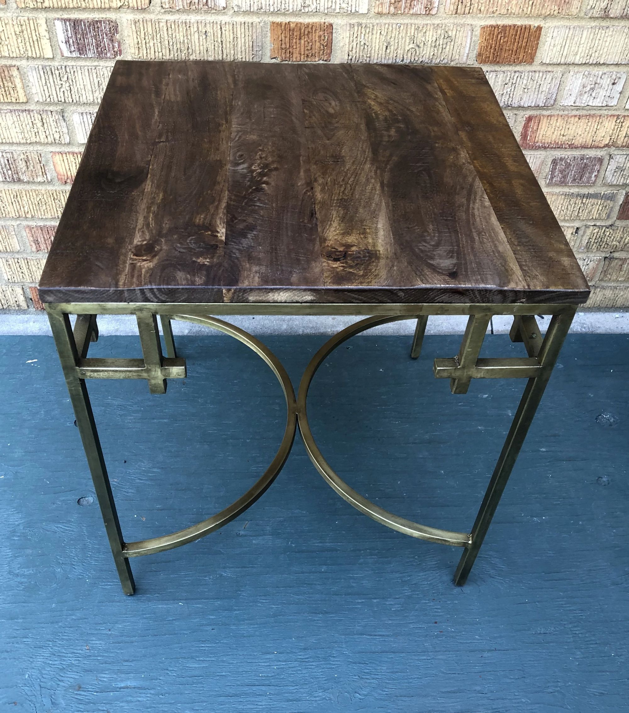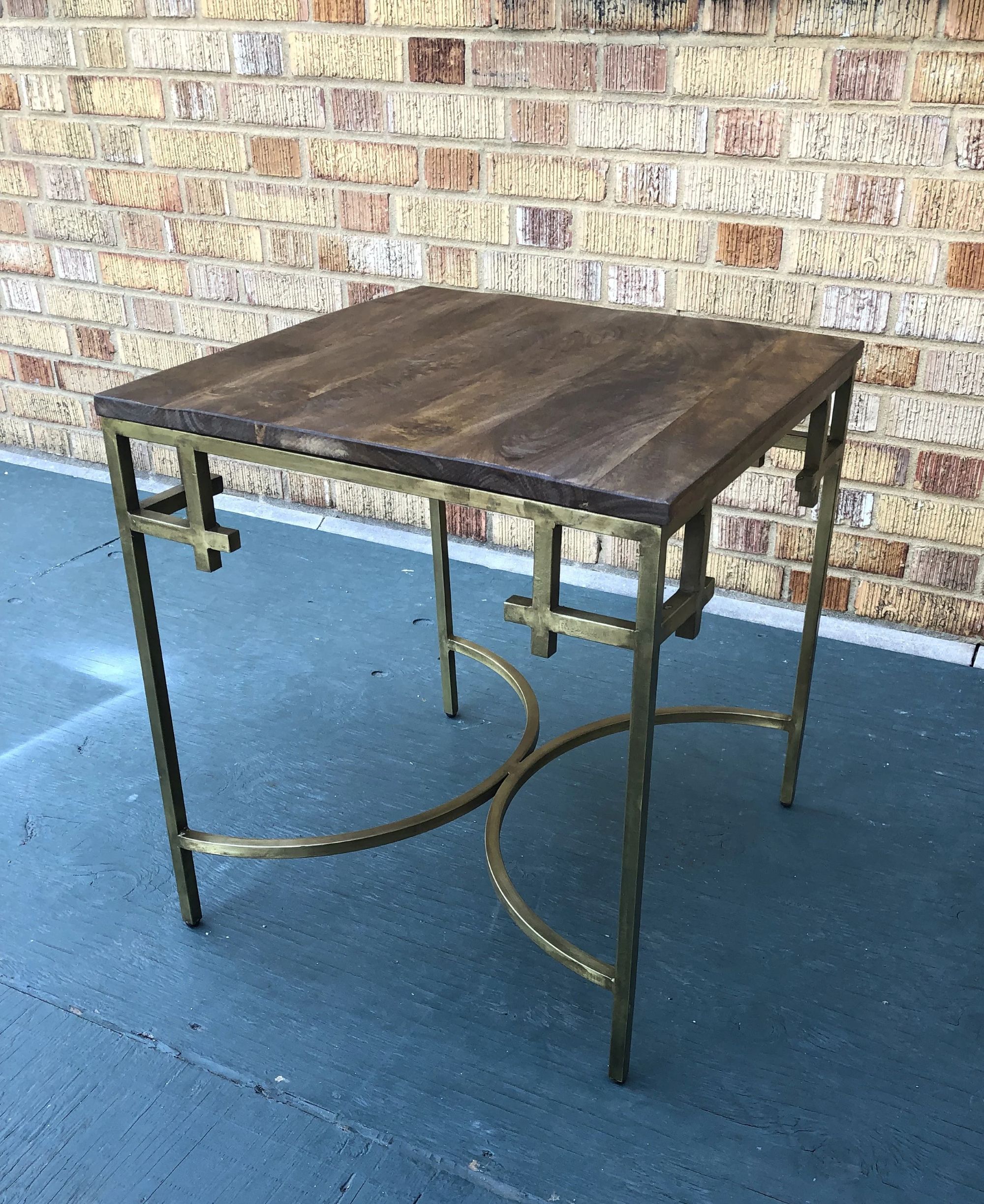 Modern Teak Side Table Rustic Iron Semi-Circle Base PAIR End Table quantity