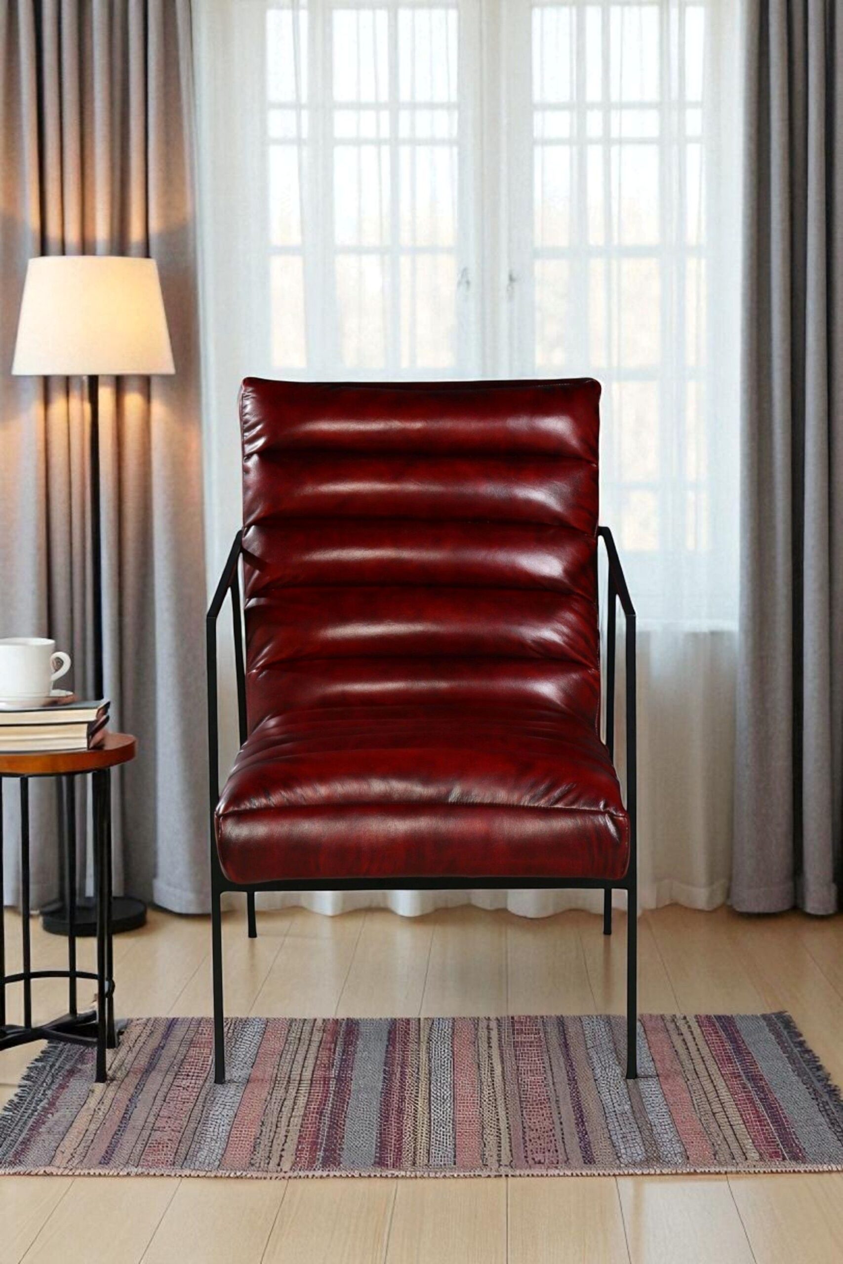 Pair Industrial Modern Red Leather Tufted Dining Contemporary Home Office Accent Chairs quantity