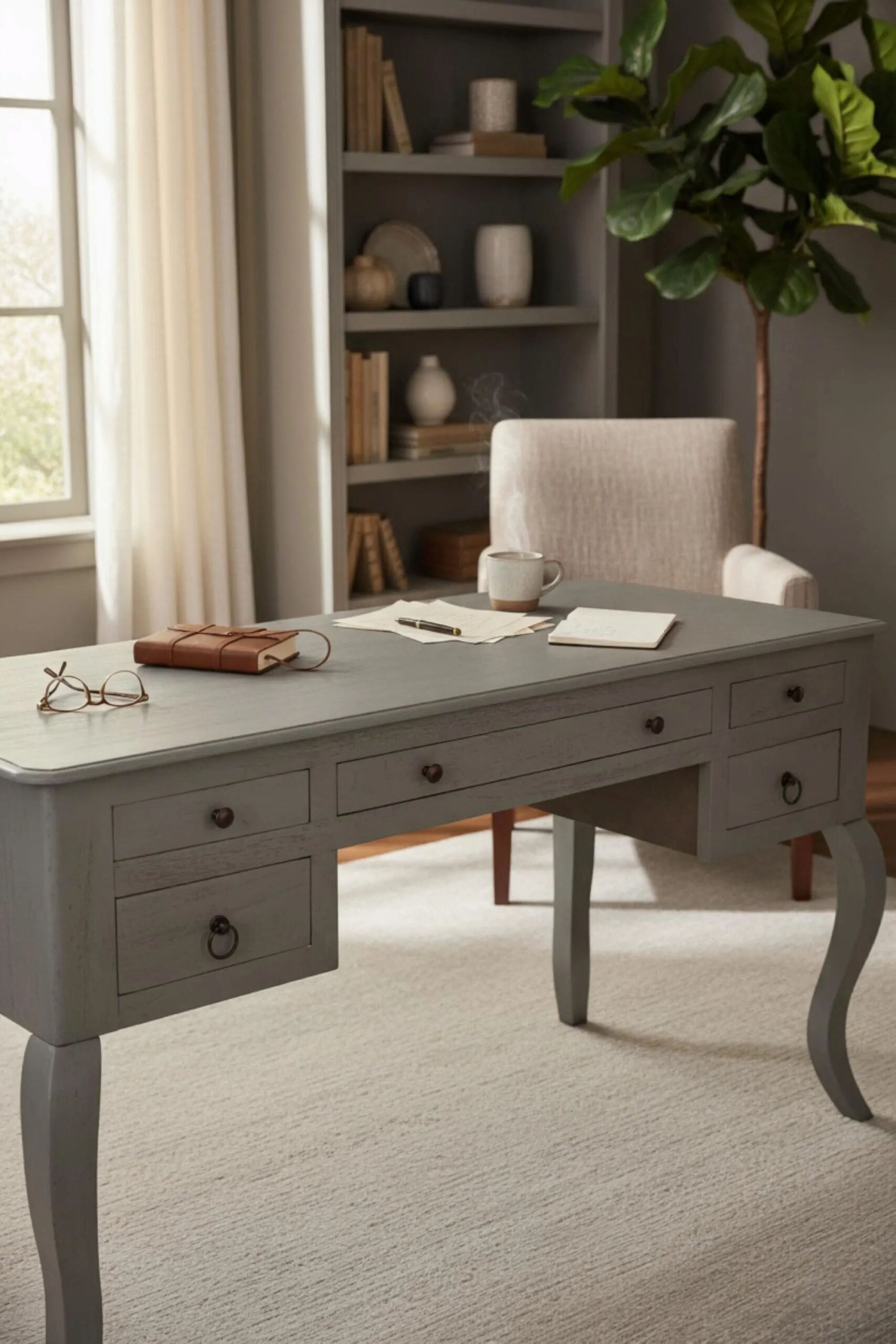 Beautifully handcrafted French Queen Anne Vanity offers 5 Drawers.