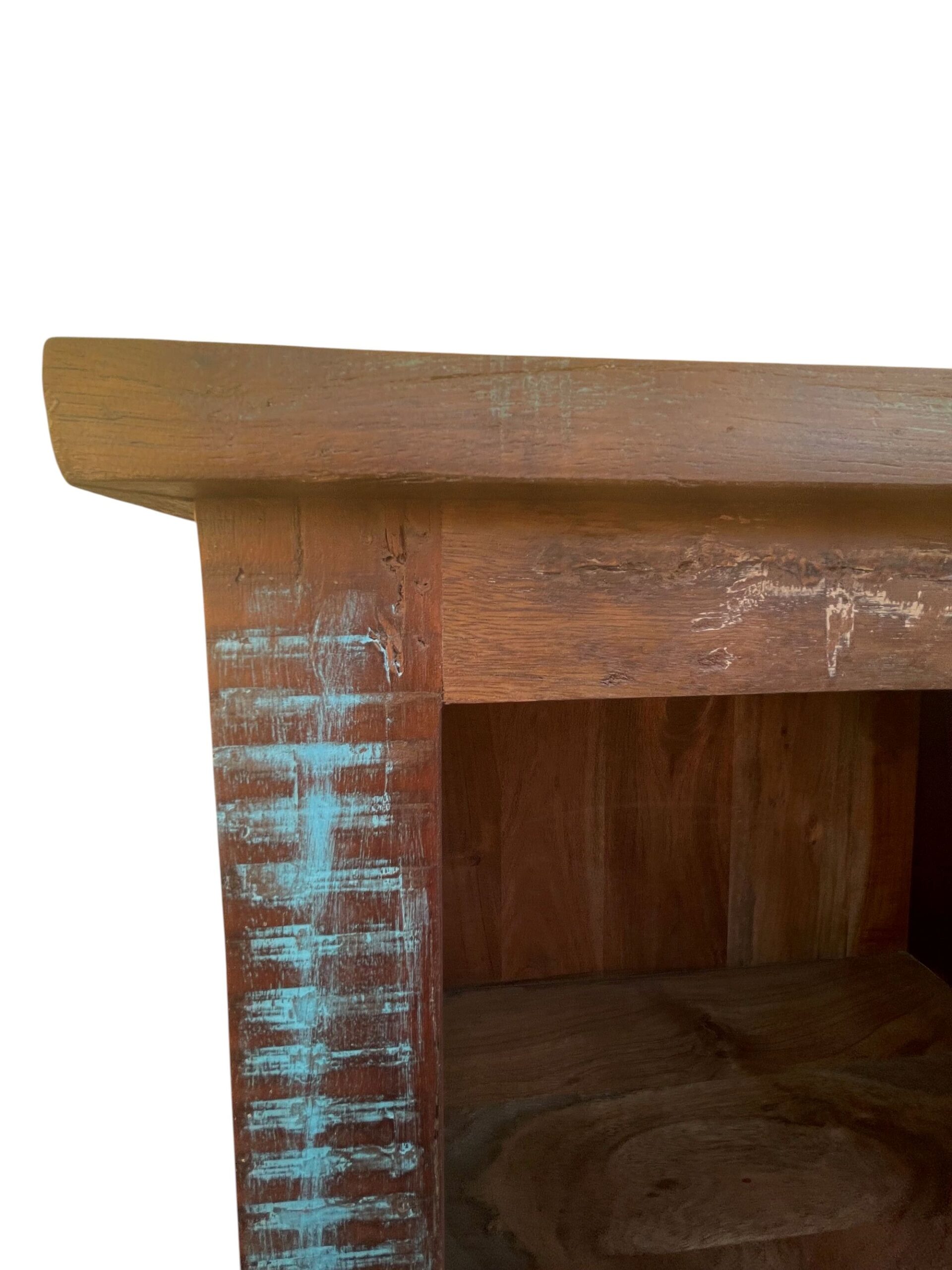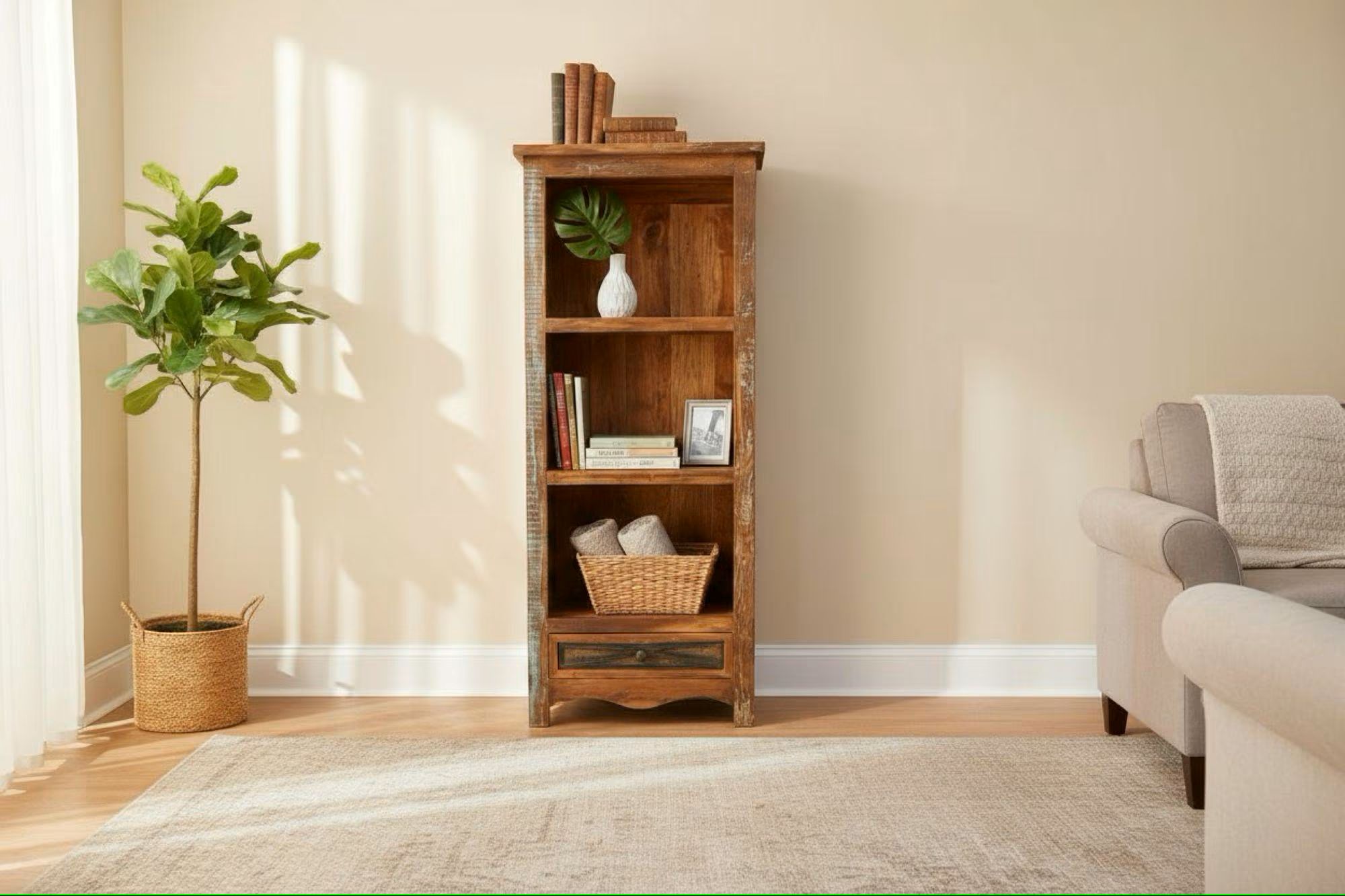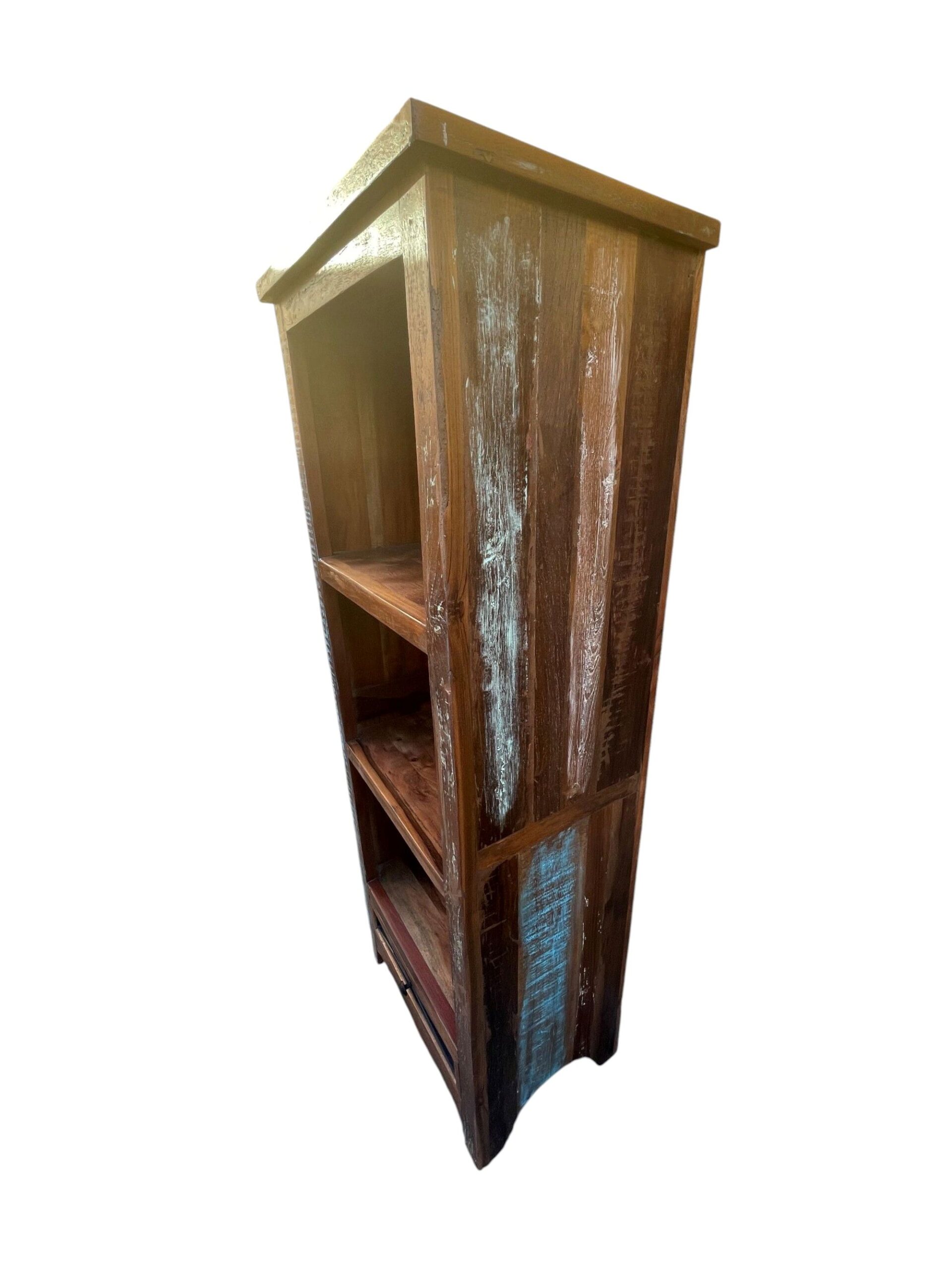 Reclaimed Open Shelf Bookcase with 1 Drawer Distressed Blue Rustic Handcrafted