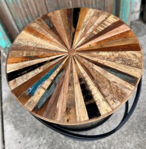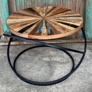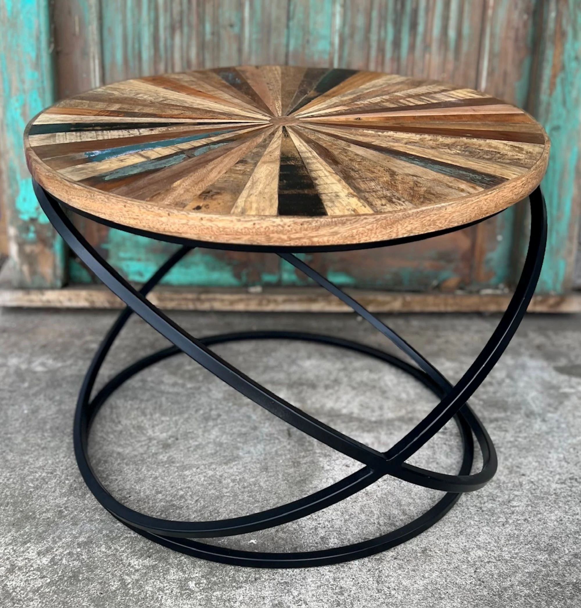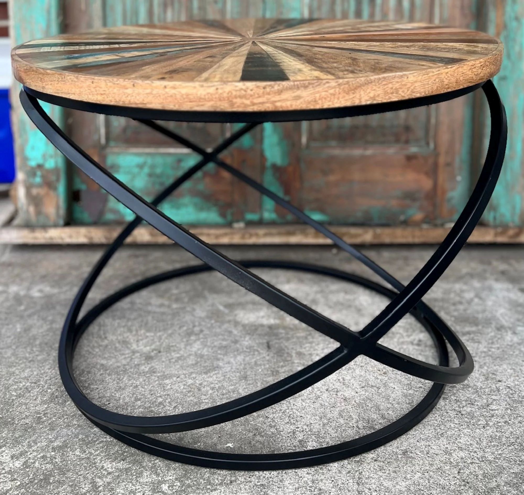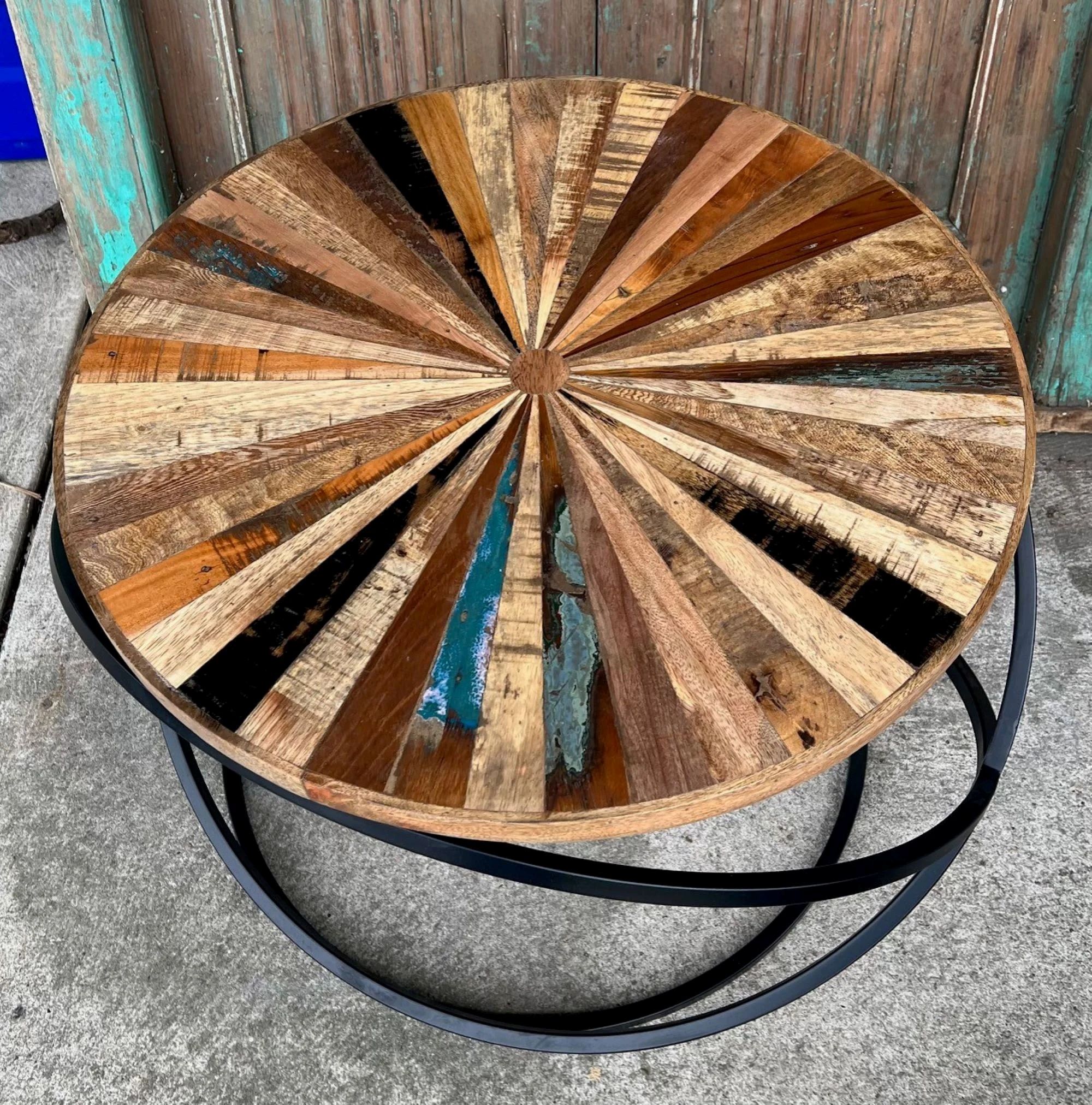 Round Contemporary Modern Rustic Coffee/Side End Table Iron Base Primitive Coastal Solid Wood