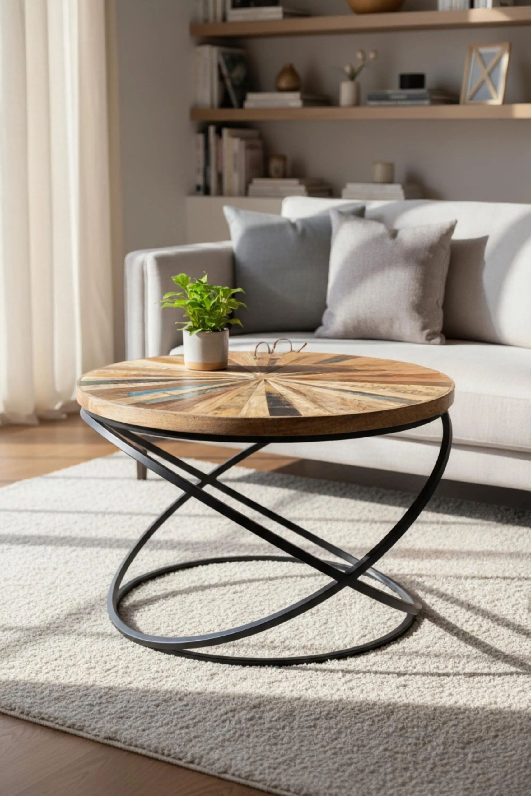 Round Contemporary Modern Rustic Coffee/Side End Table Iron Base Primitive Coastal Solid Wood quantity