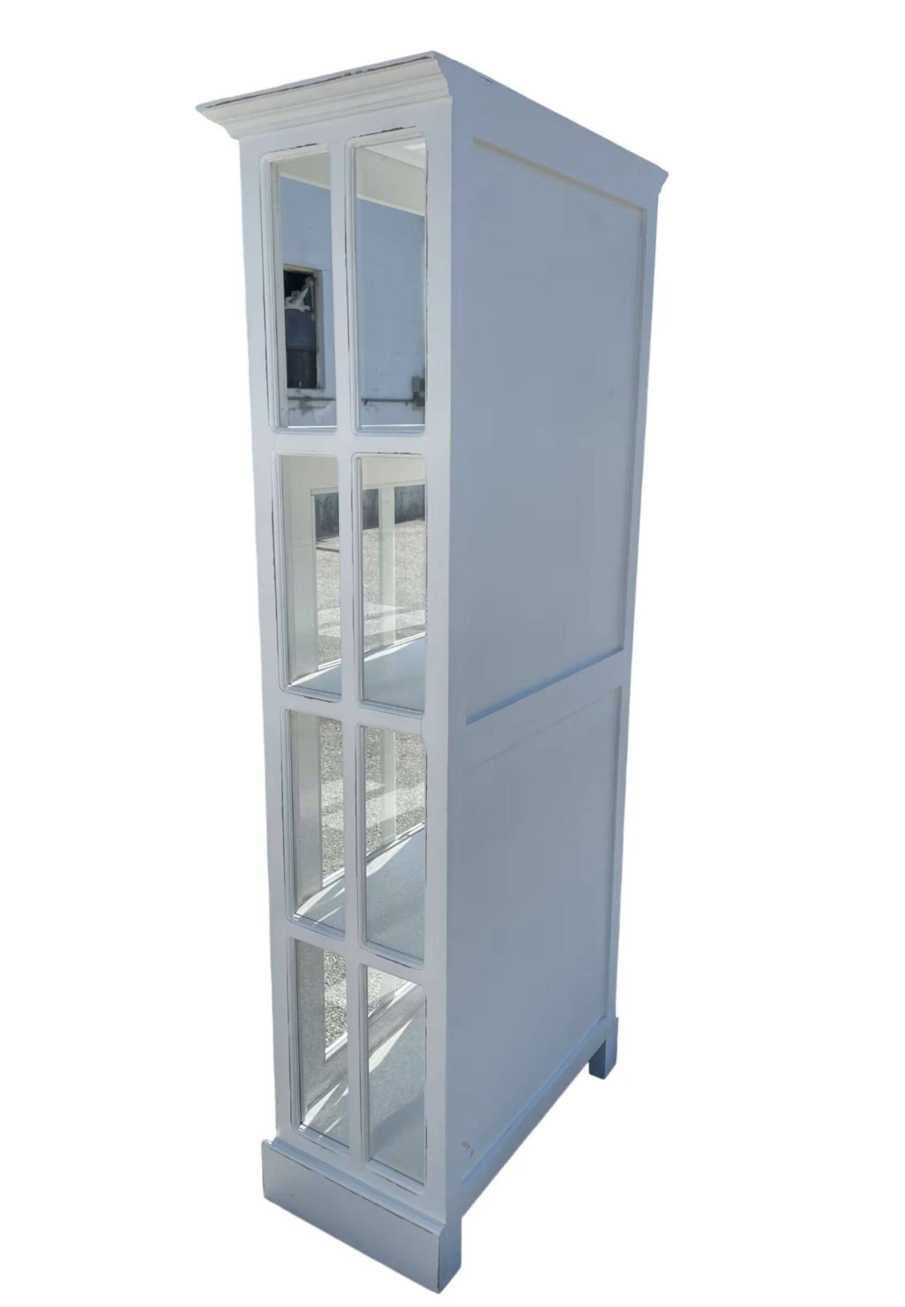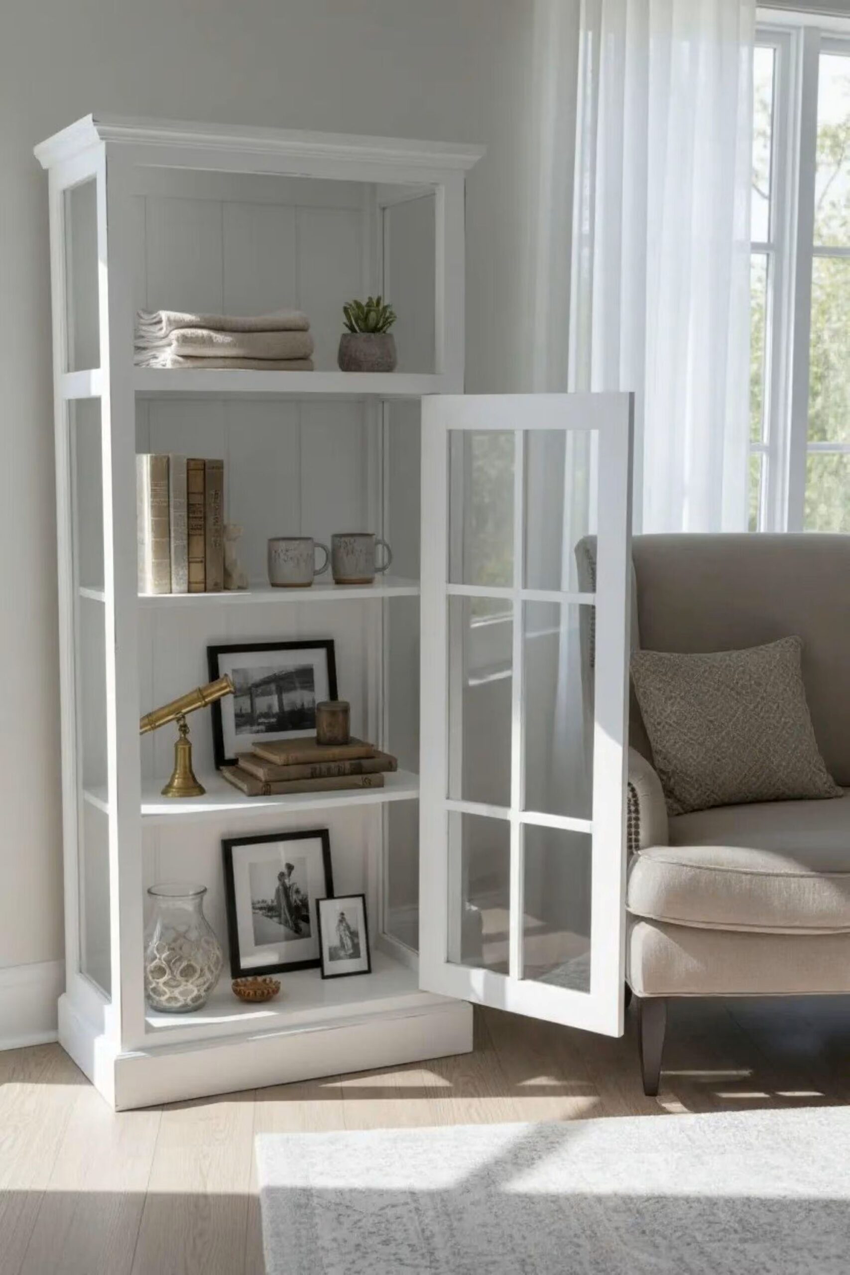 Shabby Chic Glass Door Display Primitive Linen Storage Kitchen Cabinet White