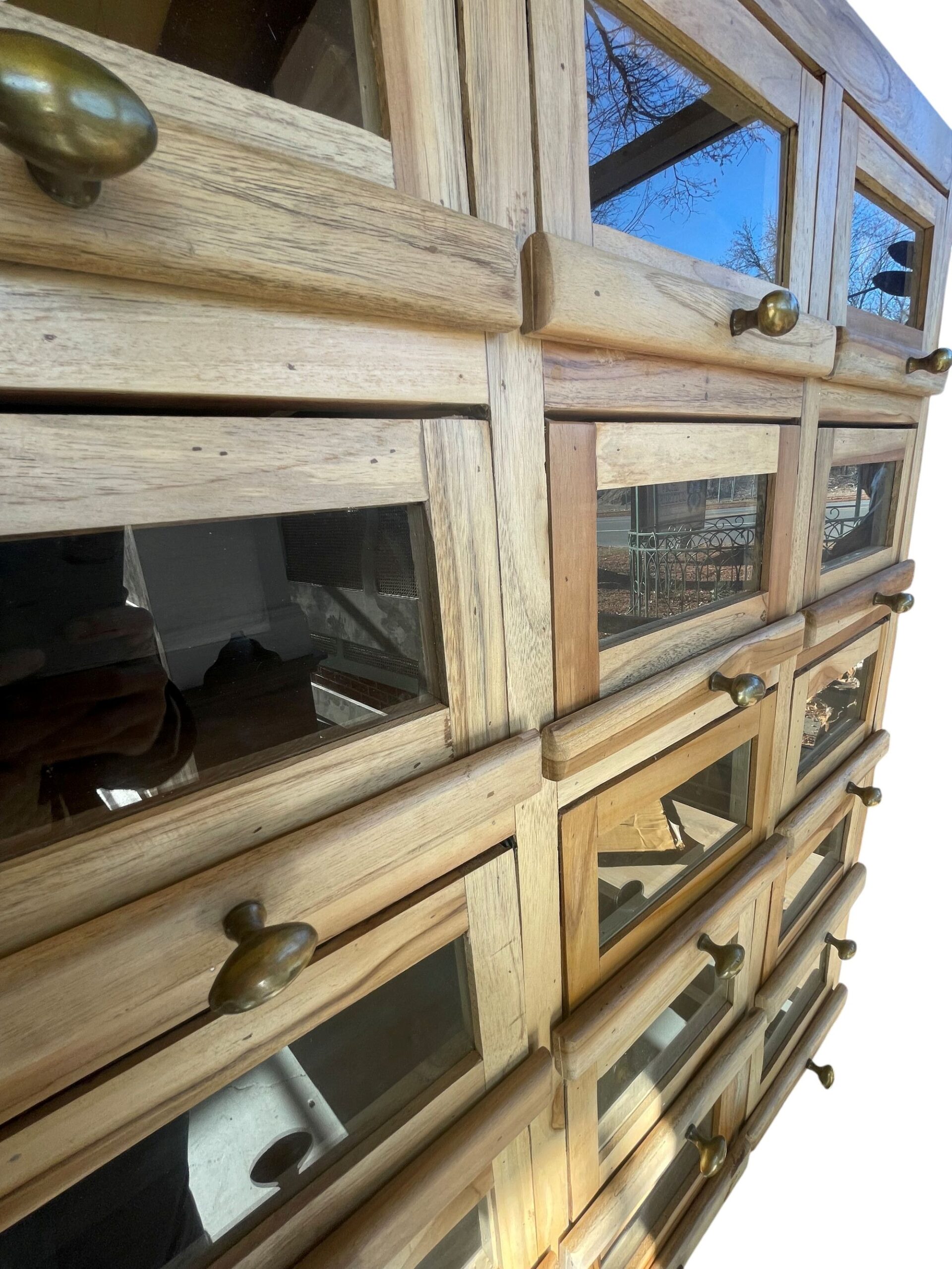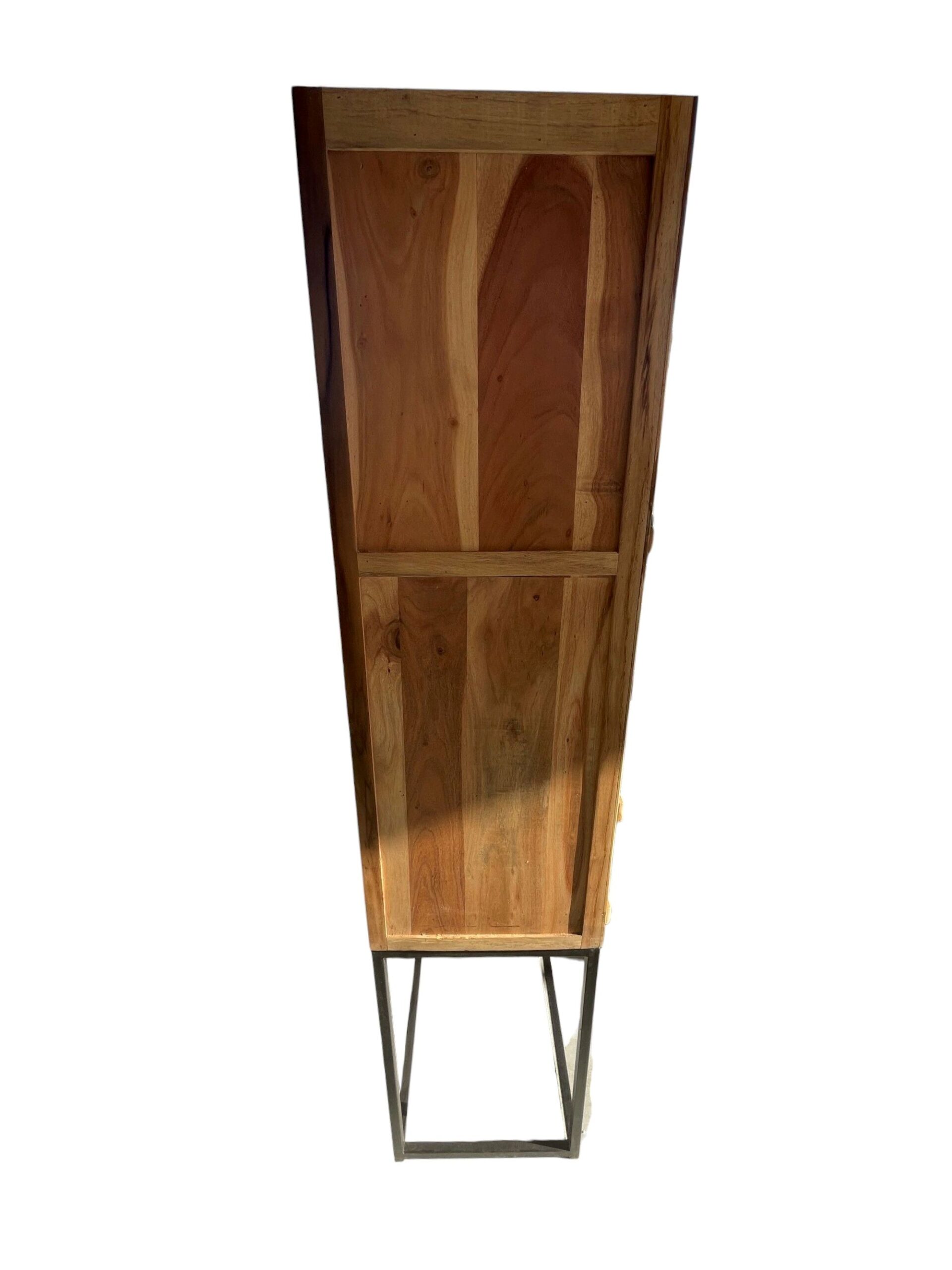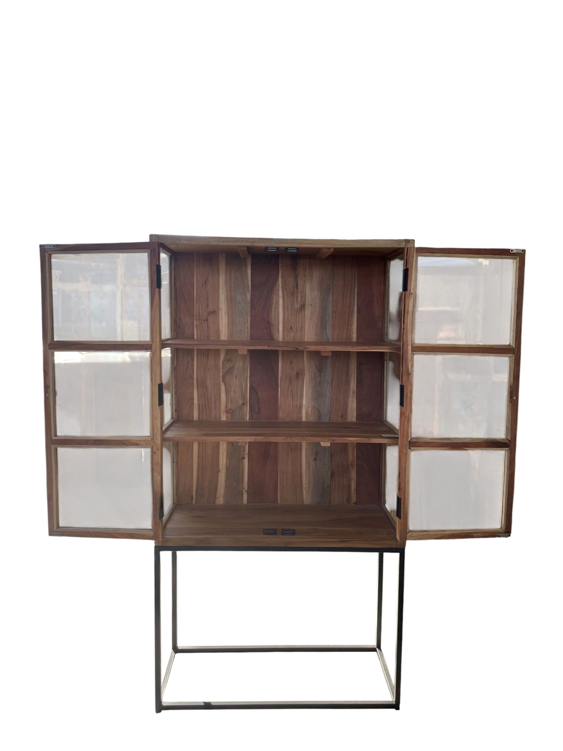 Solid Wood Glass Display Cabinet Modern Industrial Iron Base Organizer Retail 15 Lift Door