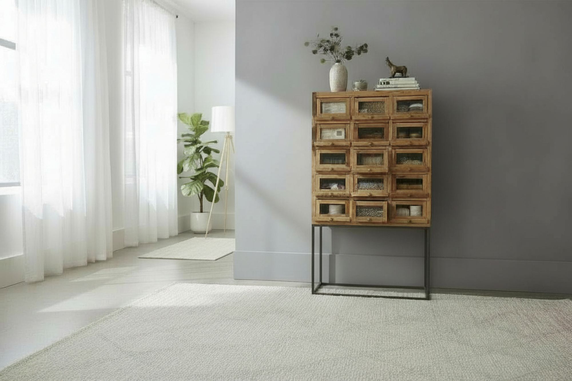 Industrial Midcentury Modern Linen Kitchen Storage Garage Gothic Cabinet 3 Drawers 1 Door