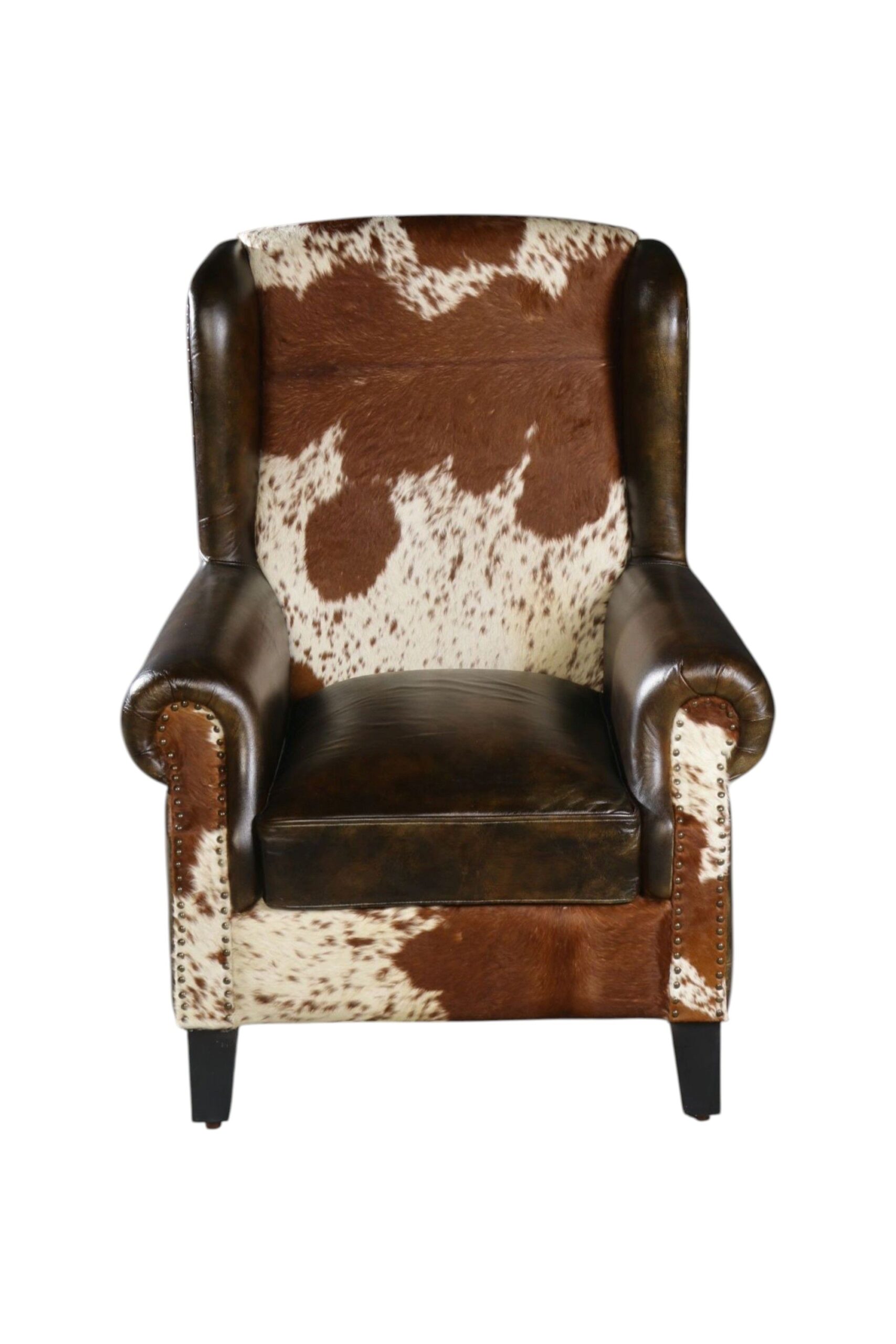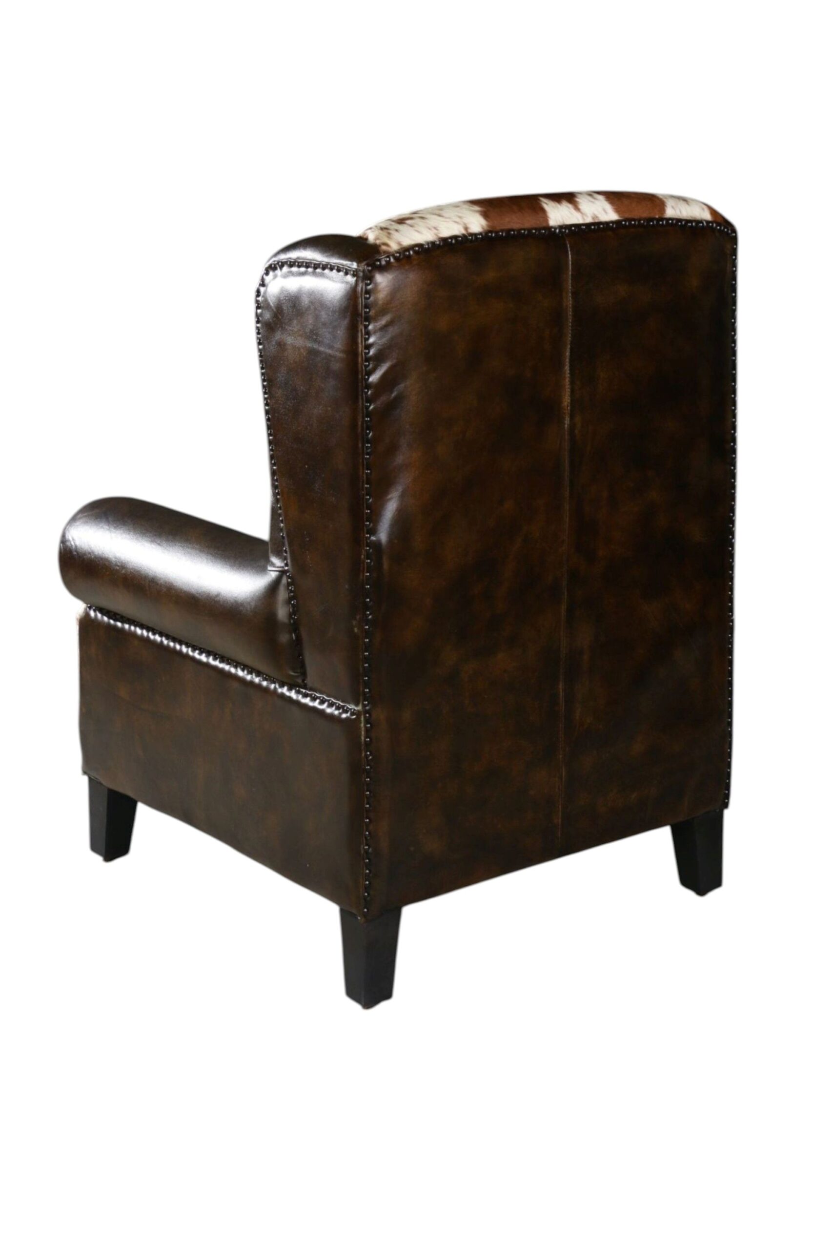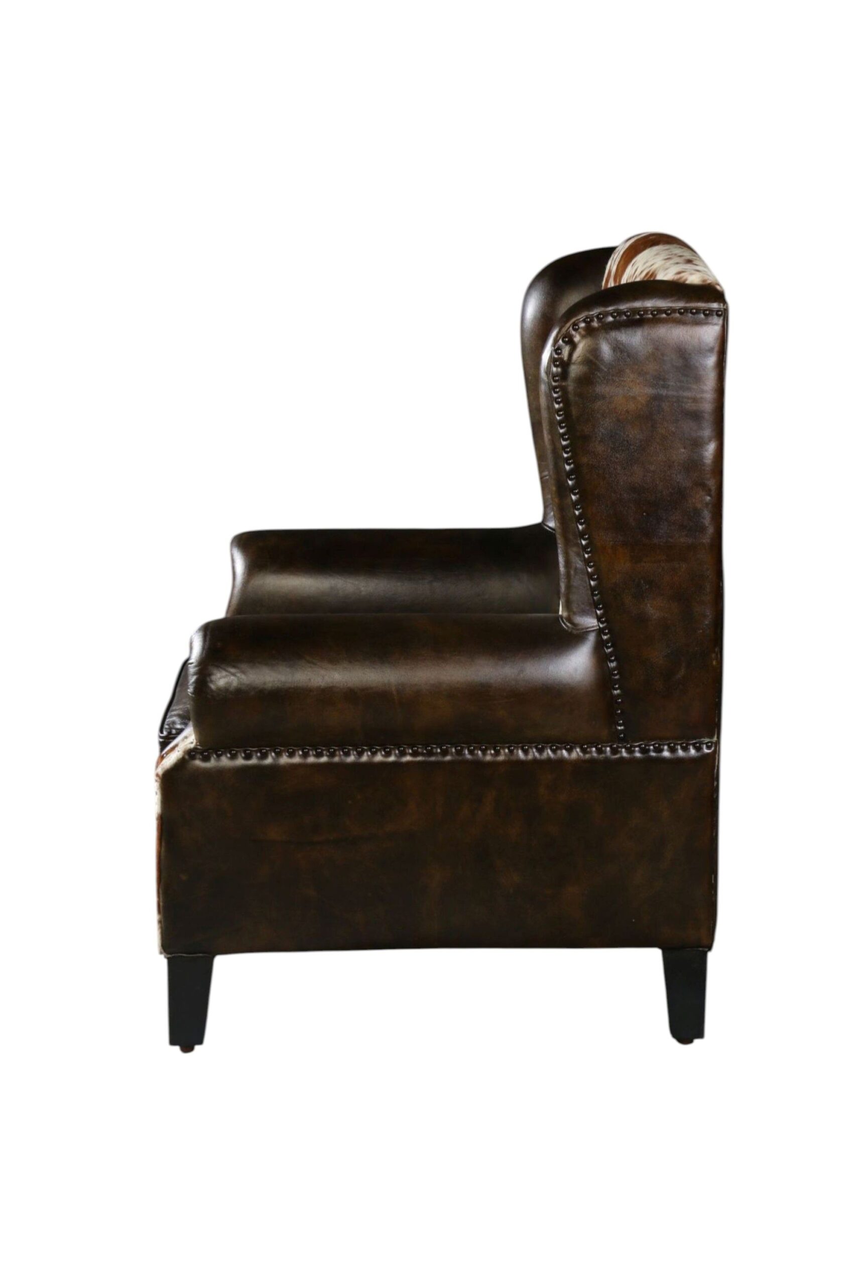 Southwestern Wingback Leather Lounge Chair Brown and white Natural hide With Dark Leather Seating Office Den Living Room Accent Western