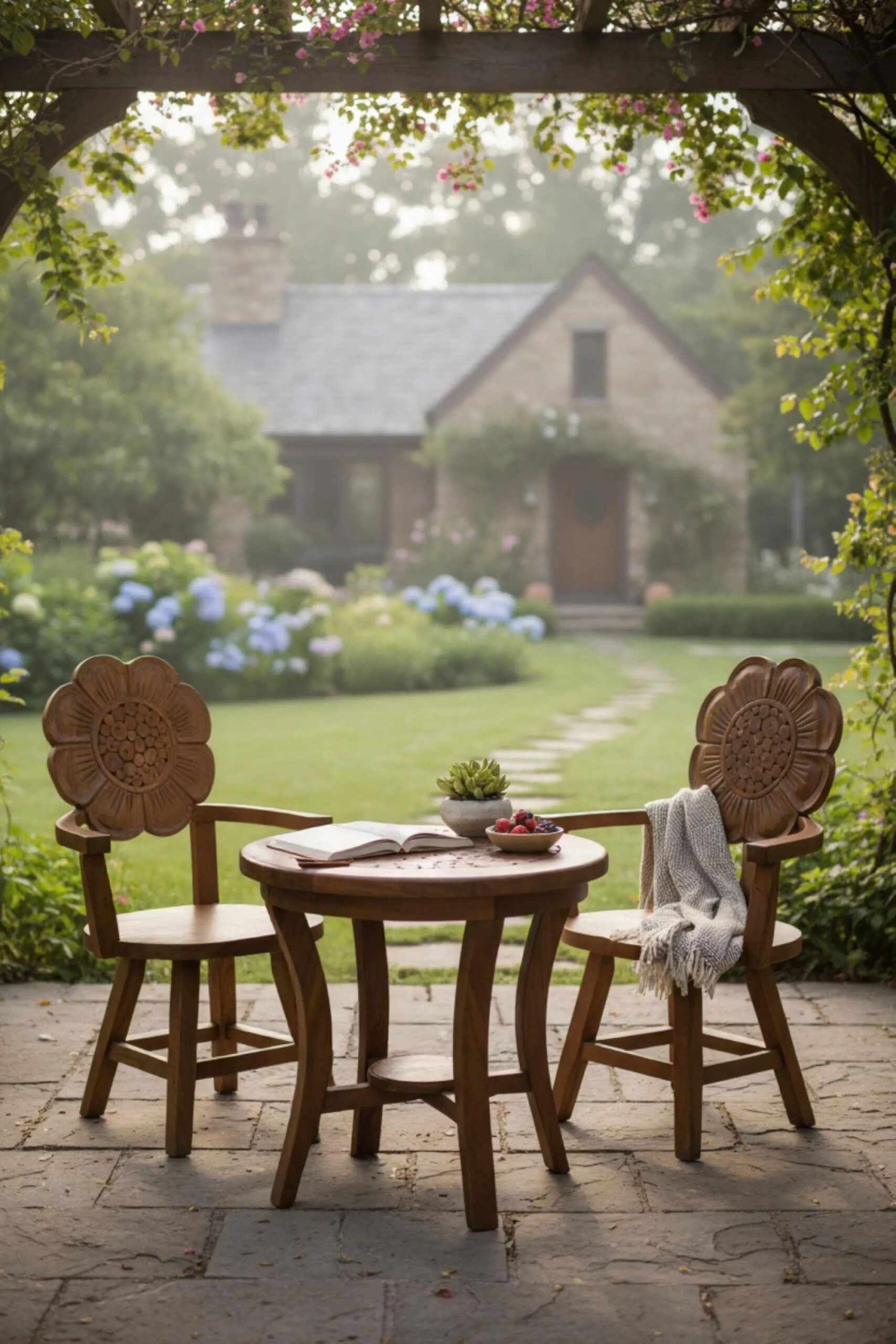 Chairs 23.5″ length x 24″ depth x 39″ height. Seat 17.5″ height.